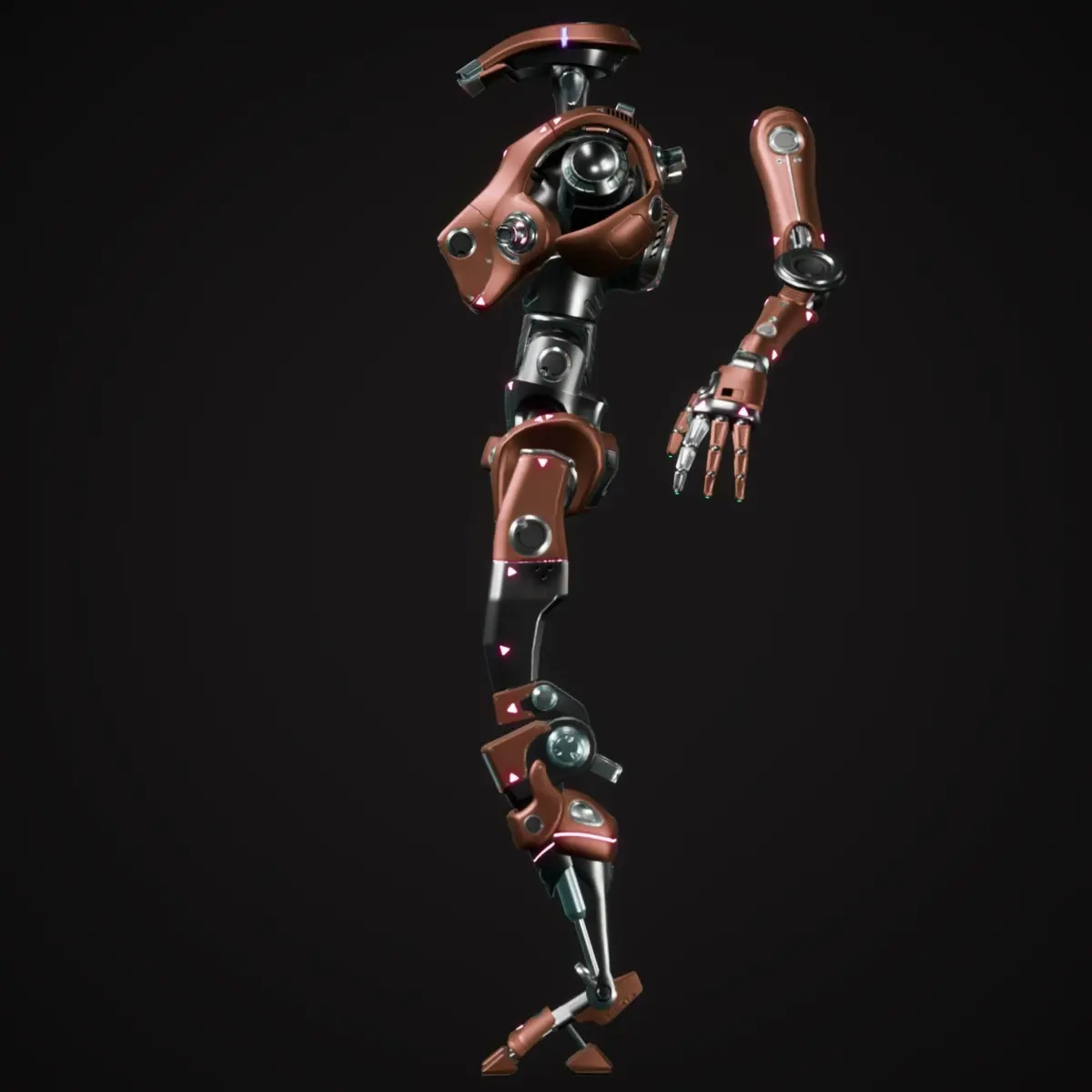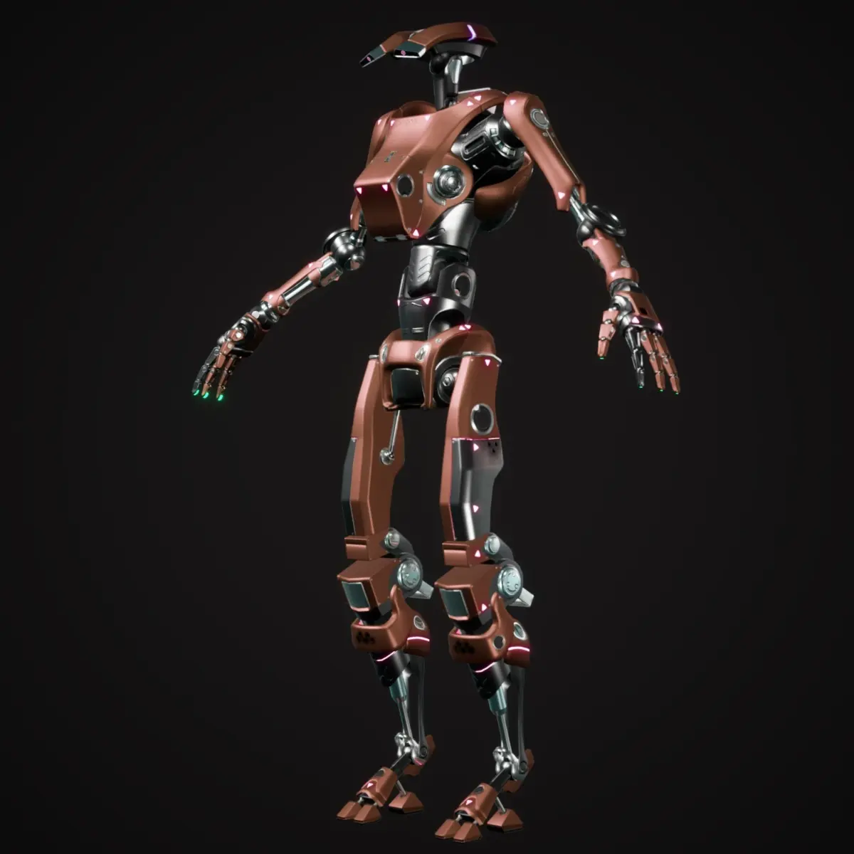 Unique robot designed for non-combat missions, inspired by many different franchises to create a non-threatining but realistic look. Basic rig using Autodesk Maya, and should work with most Mixamo animations and rigs. Primarily used in Unreal Engine 4. Most of the joints are also ball joints, with the exception of the waist and knees.