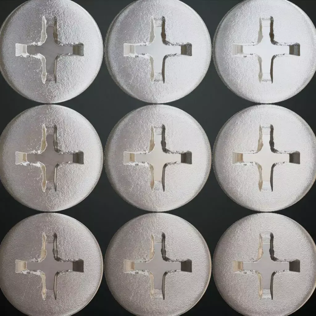 This material features a high-density pattern of metal screw heads, bolts, or fasteners embedded into a solid metallic base. It is designed to simulate the look of reinforced structural plating or heavy-duty machinery covers where security and assembly are paramount. The Normal and Height maps are the stars of this material, providing crisp, deep definition for the screw drives (such as Phillips, Flathead, or Hex) and the slight protrusion of the heads from the surface. This is an ideal choice for sci-fi bulkheads, industrial floor panels, heavy equipment cladding, or any asset requiring a bolted-down aesthetic. The Metallic and Roughness maps ensure that the light catches the circular edges of the screws differently than the flat plate, creating a highly realistic mechanical feel. This material is provided in 2K resolution. If you require high-quality material in 4K, 8K, or 16K, please contact us. A Blender native file is provided along with a separate PBR textures folder that can be used in any 3D software, including 3ds Max, Cinema 4D, Maya, game engines like Unreal Engine and Unity, and texture painting software such as Substance Painter.