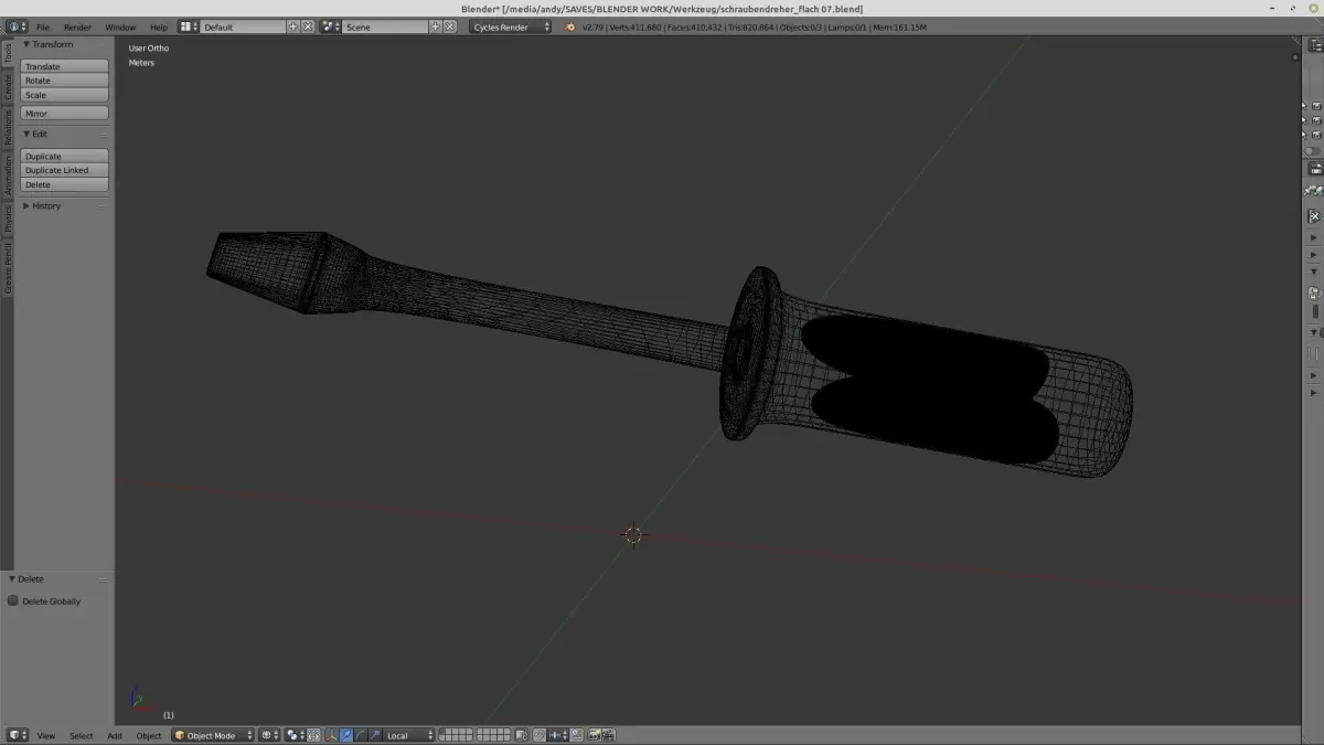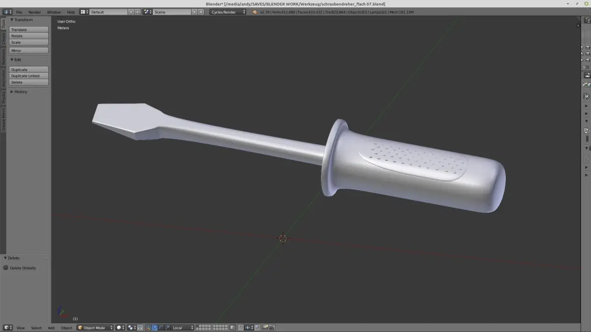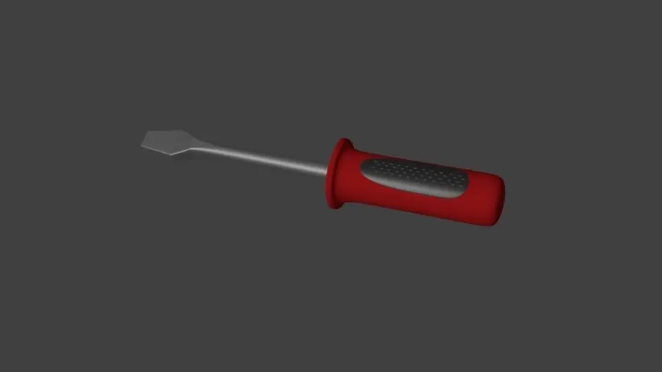 this is a flat screwdriver colored red and with a grey rubber coating. Materials included. Made with Blender 2.79