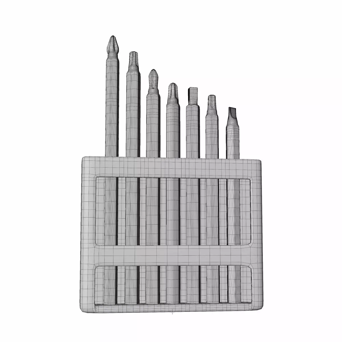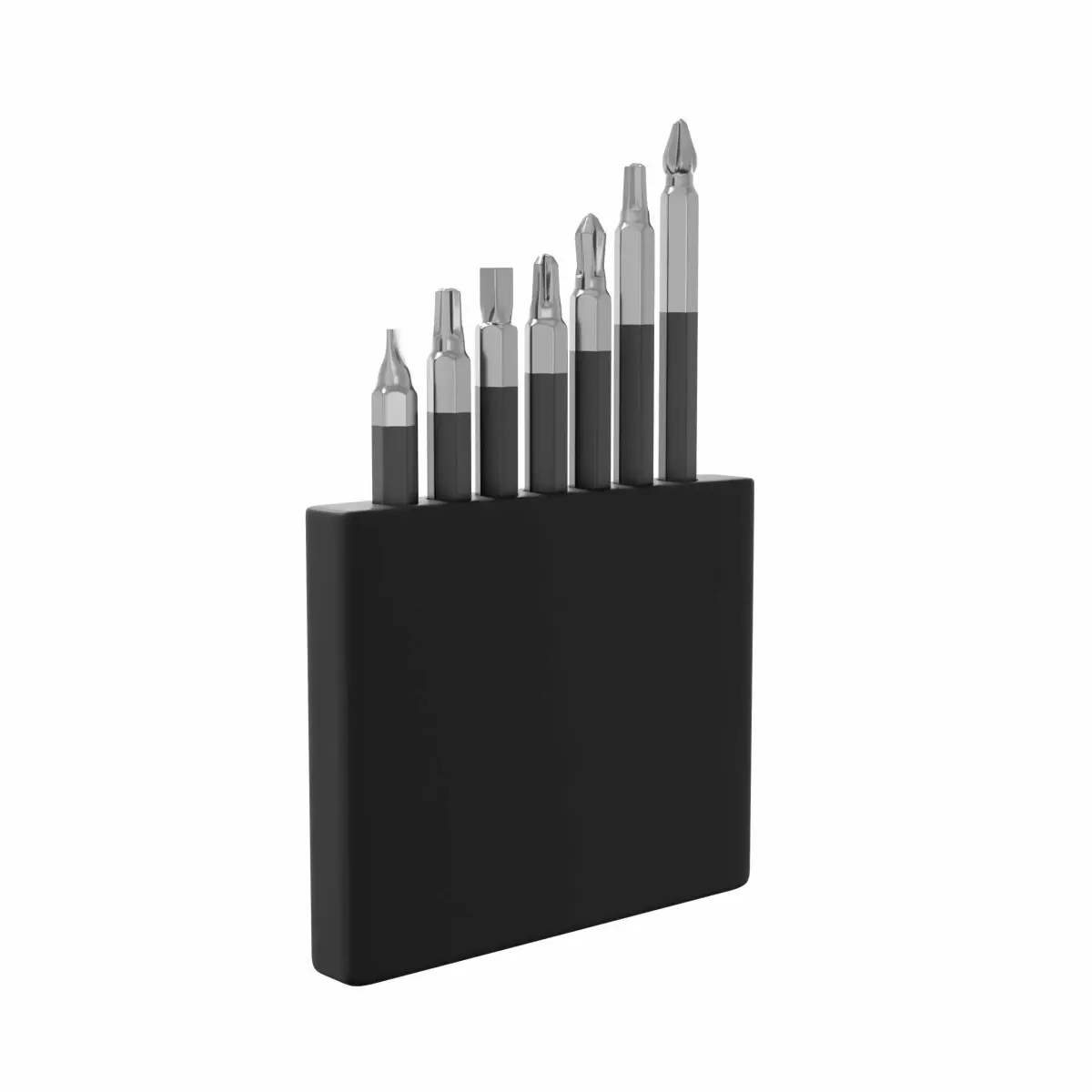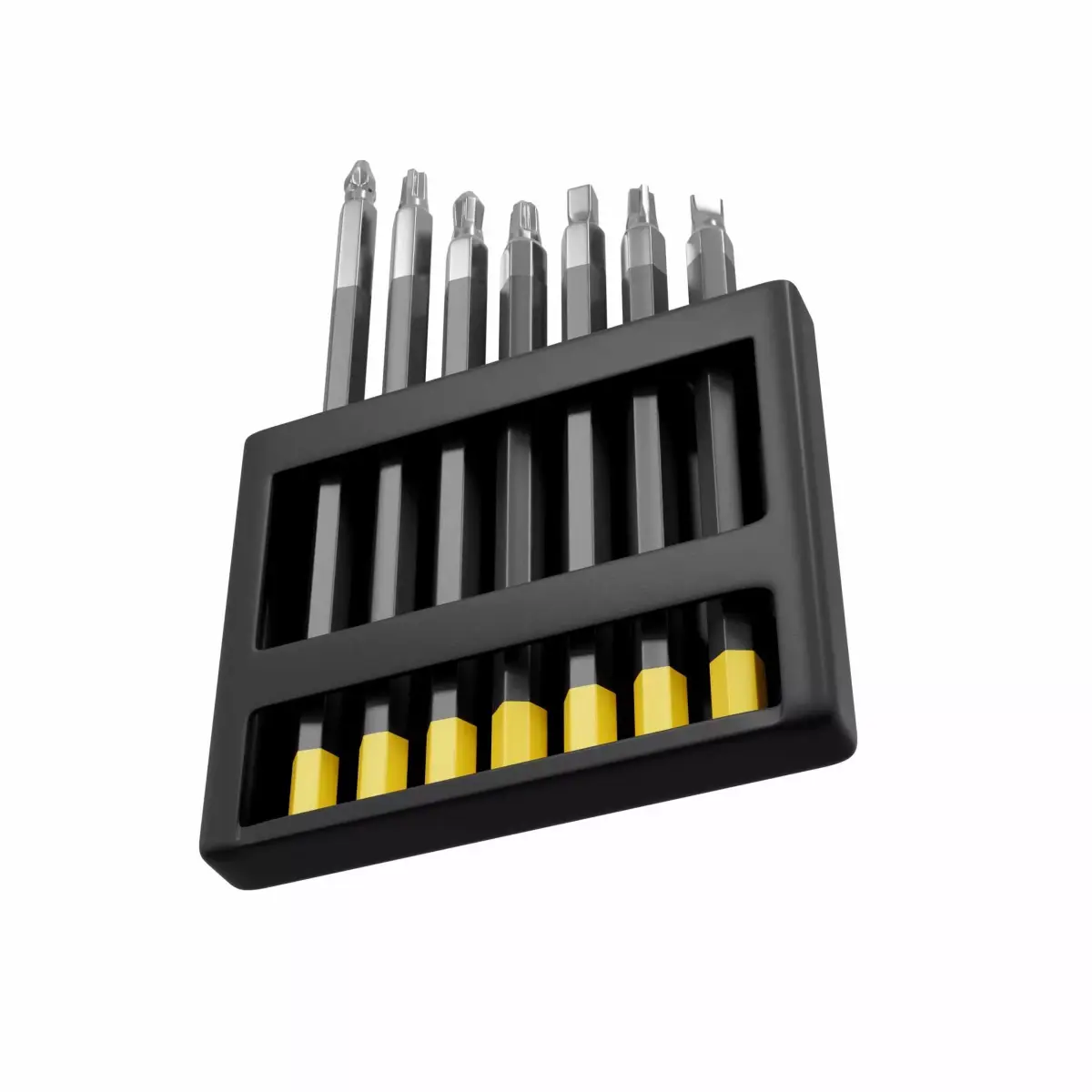 A detail industrial working tool or matchine or electric item named Screwdriver Bit Set. Its a photorealistic 3d model made in blender, than use as any acctractive decor item for product visualization.