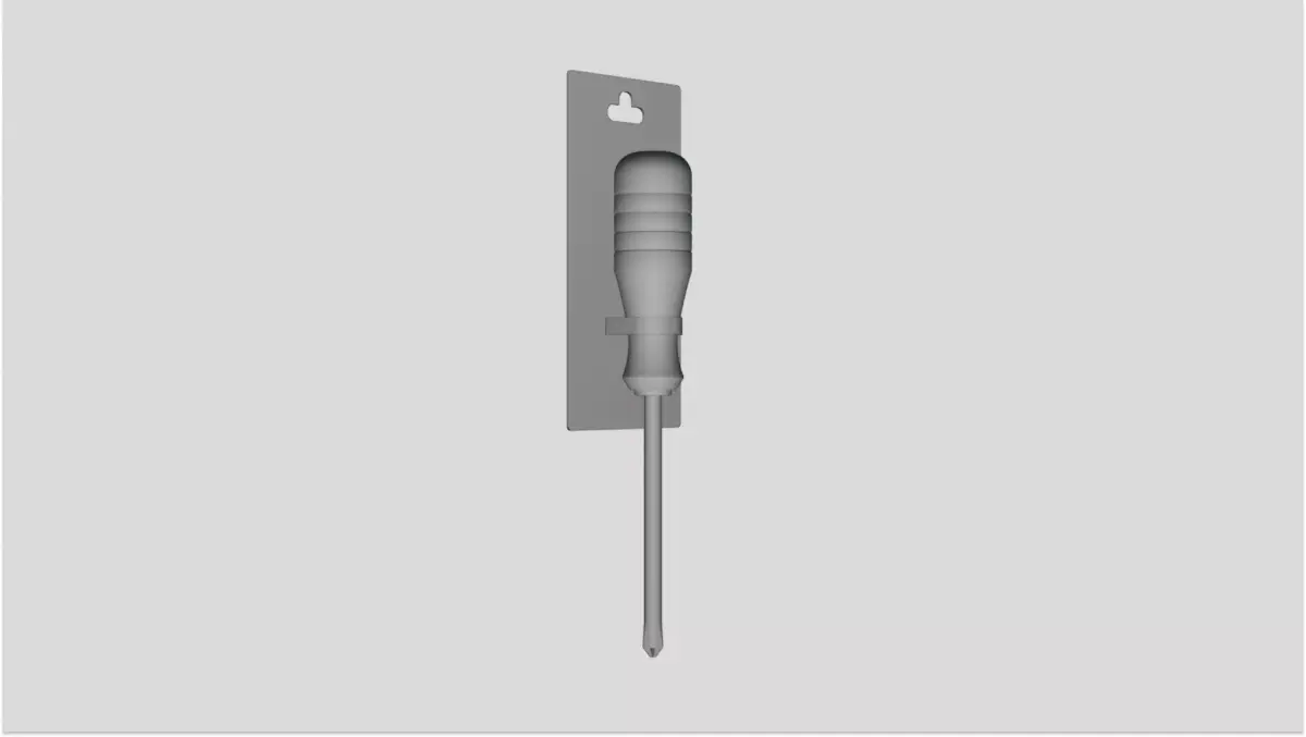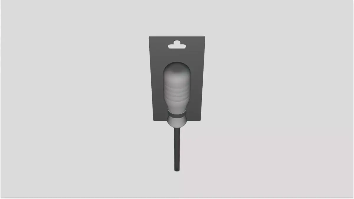 D model including backing card, plastic blister seal, handle grip, and screwdriver tool. Ideal for product packaging mockups, hardware store displays, and promotional renders.