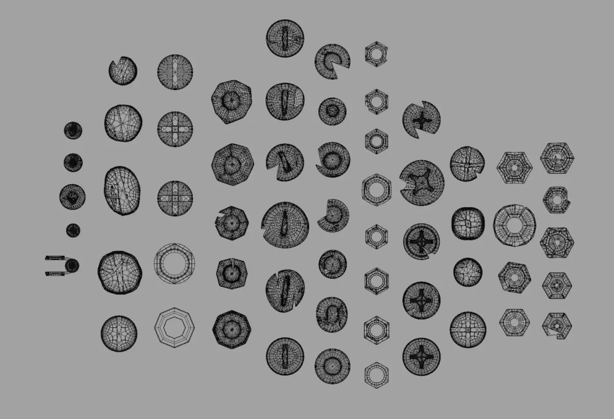 *Pack for 3D Kitbashing (Realistic and Stylized)*3D Models of Screws, Nails Bolts and Nuts Pack for Kitbashing, Hand modeled for you to use in your own projects.