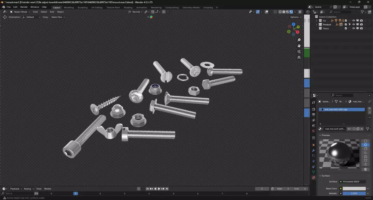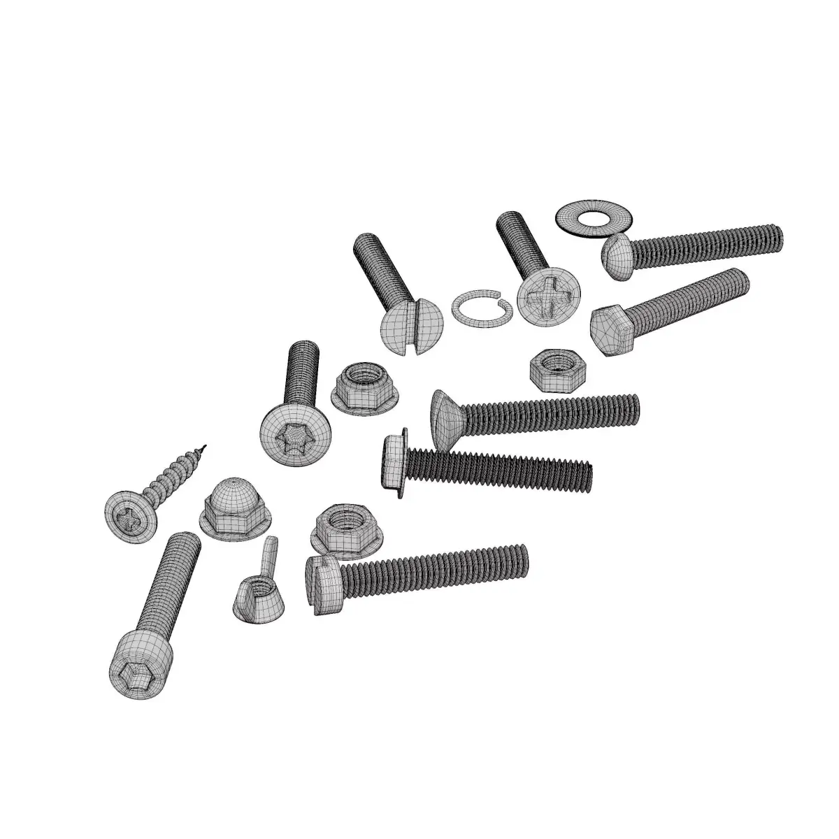 A detail Furniture blender 3d model named screws nuts bolts. Its a photorealistic 3d model made in blender, than use as any school intorior decor item for Architecture visualization.