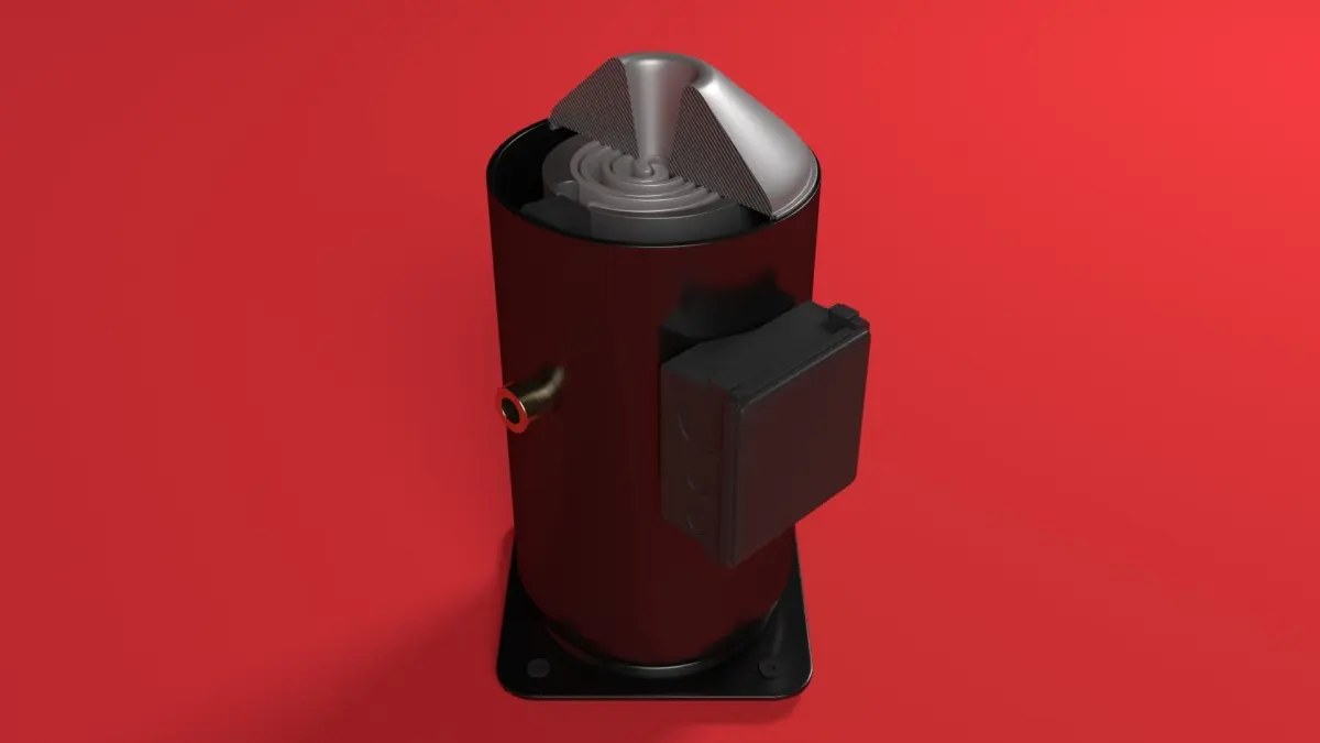 The parts that make up this unit are meant for visualization purposes only. This is not a fully accurate representation of an actual scroll compressor. Light setup is not included in this scene.