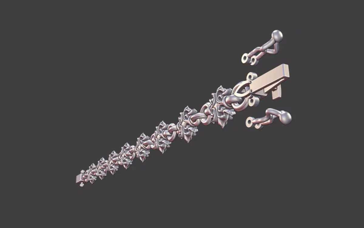 This scrollwork-style linked bracelet combines ornamental artistry with functional design, making it an ideal asset for jewelry creators, digital artists, and collectors. Each link features flowing scroll motifs inspired by classical metalwork, giving the piece an elegant and decorative appearance. The pattern repeats smoothly along the length of the bracelet, maintaining visual harmony while allowing natural movement between each articulated segment.