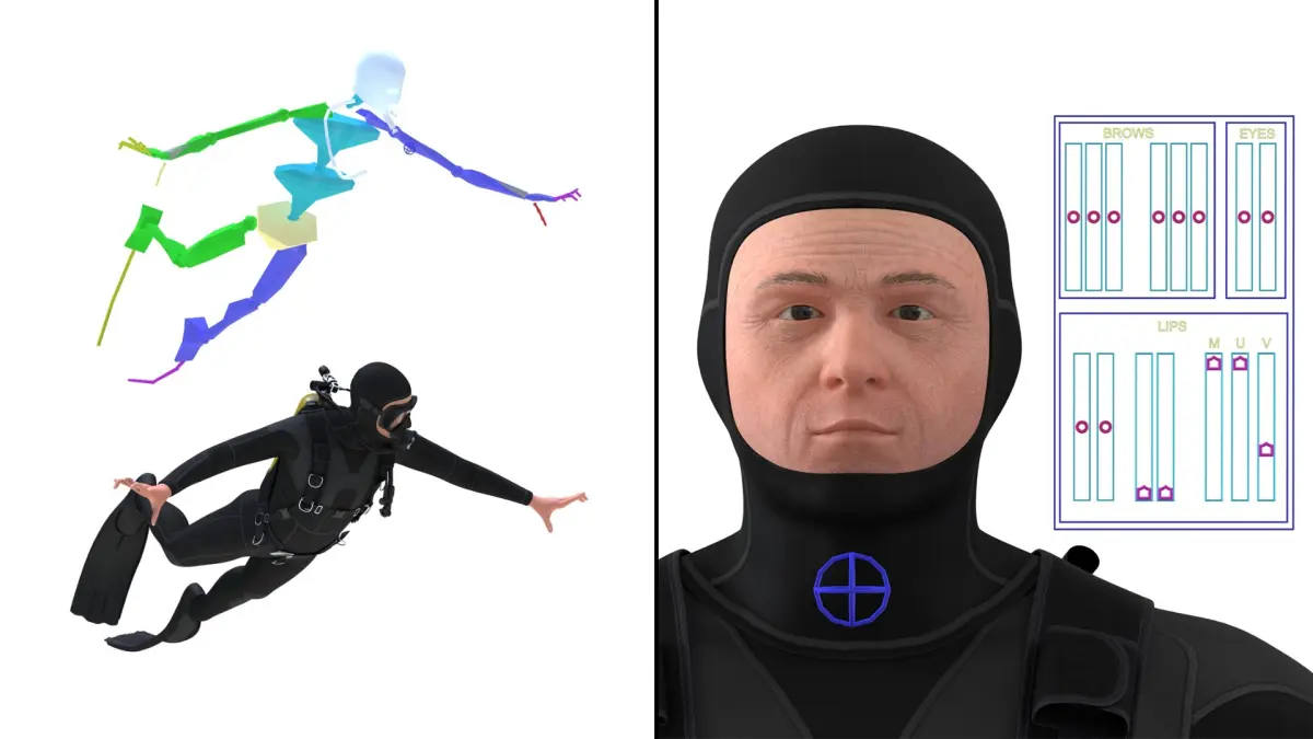 Scuba Diver and Fish Rigged Collection is a set of three-dimensional models of underwater scene featuring a scuba diver exploring a vibrant coral reef teeming with marine life.