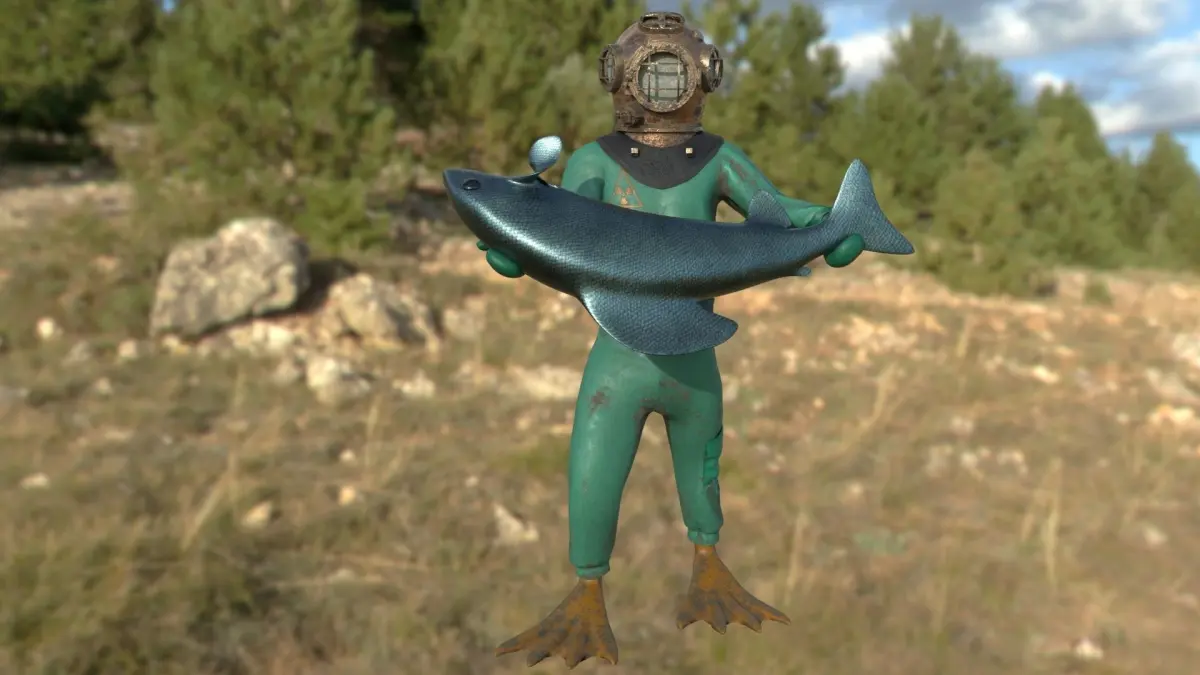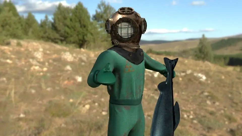 Scuba diver Low-poly 3D model