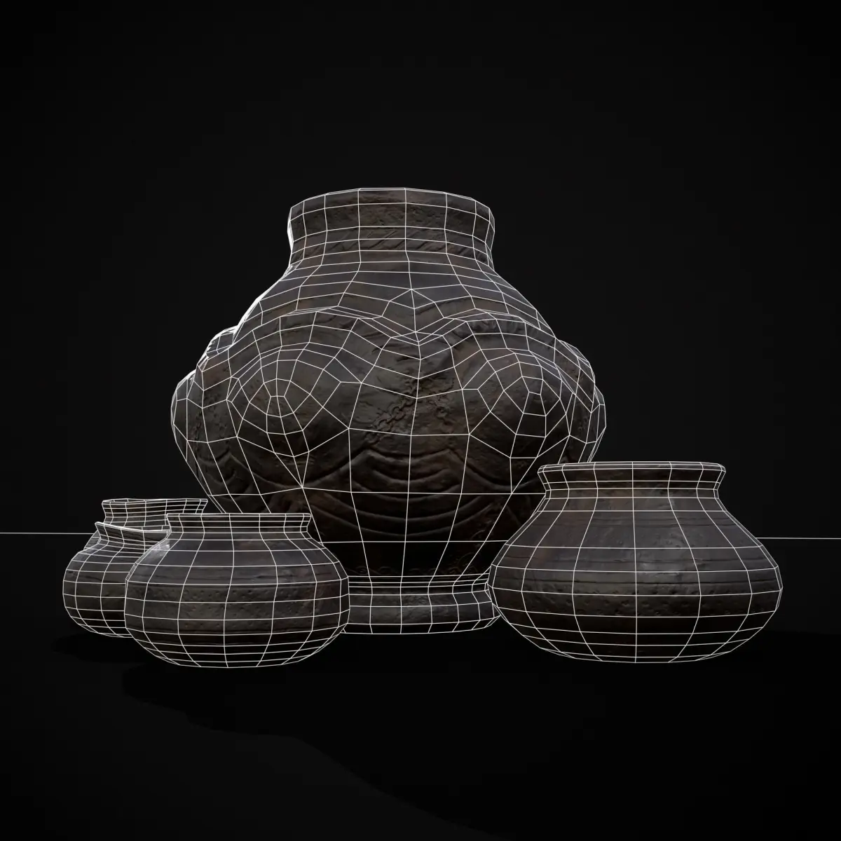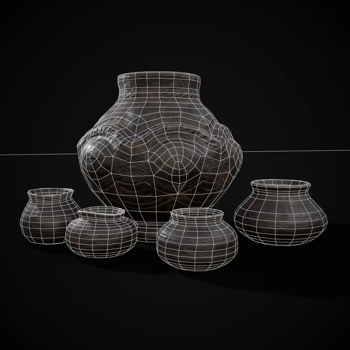 Sculpted Five Pottery Set 3D Model Files Include FBX and OBJ. Includes PBR Texture in 4096 x 4096. - Maps include : Basecolor, Normal, Roughness, Height and Metallic. All Preview renders were done Marmoset Toolbag 4. Scaled to real world scale. Customer Service Guaranteed. From the Creators at Get Dead Entertainment. Please like and Rate! Follow us on FaceBook and Instagram to keep updated on all our newest models. Model can be used for any purpose except resale or redistribution of the asset if not used in a game, commercial or media project.