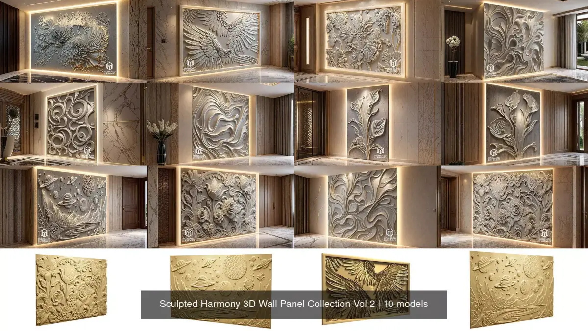 This premium 3D wall panel collection includes 10 digitally sculpted decorative reliefs, crafted for CNC carving and high-resolution 3D printing.