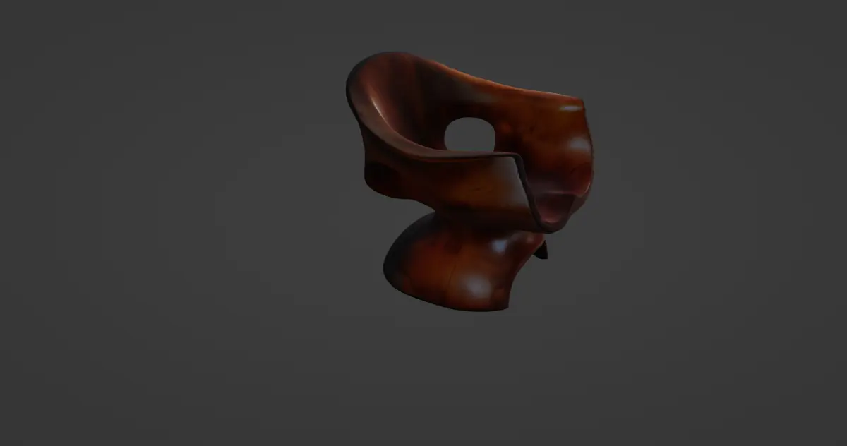 This striking 3D model showcases a sculptural wooden armchair that blends organic form with modernist aesthetics. Designed with a seamless, flowing shape, the chair appears as though it has been carved from a single block of rich, polished wood. Its dynamic curves and negative space give it a sense of movement and fluidity, making it a bold statement piece for any contemporary interior.The chair's design incorporates ergonomic considerations, with sweeping armrests and a curved backrest that cradles the user in comfort. The central cutout not only reduces visual mass but also adds a dramatic focal point, enhancing the sculptural quality of the piece. The wood grain texture is highly detailed, providing a tactile, natural finish that contrasts beautifully with the modern form.This model is ideal for interior visualization projects, furniture design showcases, or virtual staging environments that emphasize modern luxury and artisanal craftsmanship. The attention to detail in the wood texture and the curvature of the form elevates this piece from furniture to functional art.The model is downloadable in .gmb format, with texture included, ensuring a high level of realism and fidelity in rendering. It is also available in .fbx format, compatible with a wide range of 3D software for ease of integration into existing scenes or workflows.