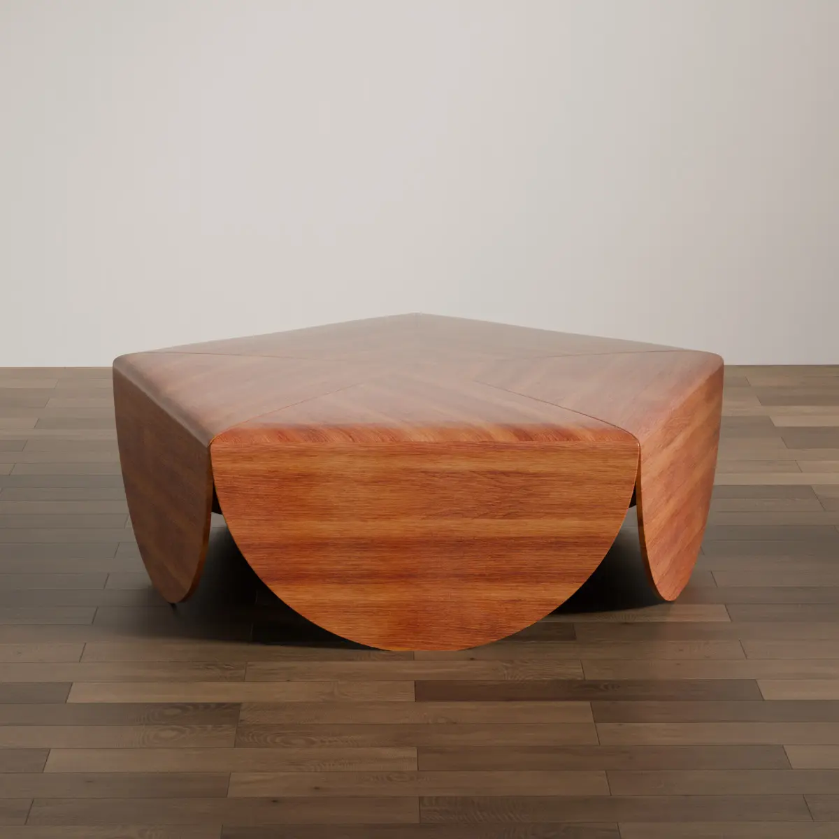 This Sculptural Wooden Coffee Table features a bold, geometric form with gracefully curved legs and a smooth wood finish. Designed for modern interiors, it adds an artistic touch to living spaces, lounges, and design projects. The model is crafted with clean topology, making it ideal for high-end visualizations and product scenes.