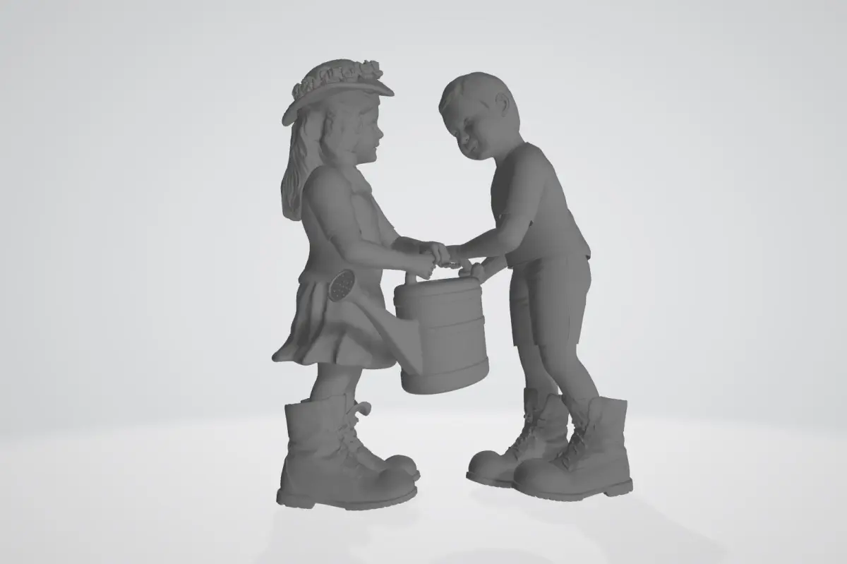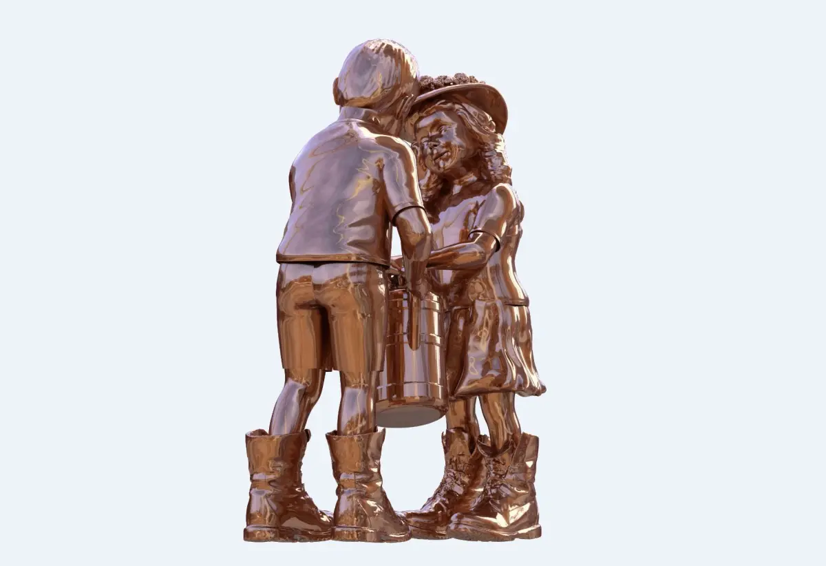 sculpture bronze statue of boy and girl holding bucket 3D model