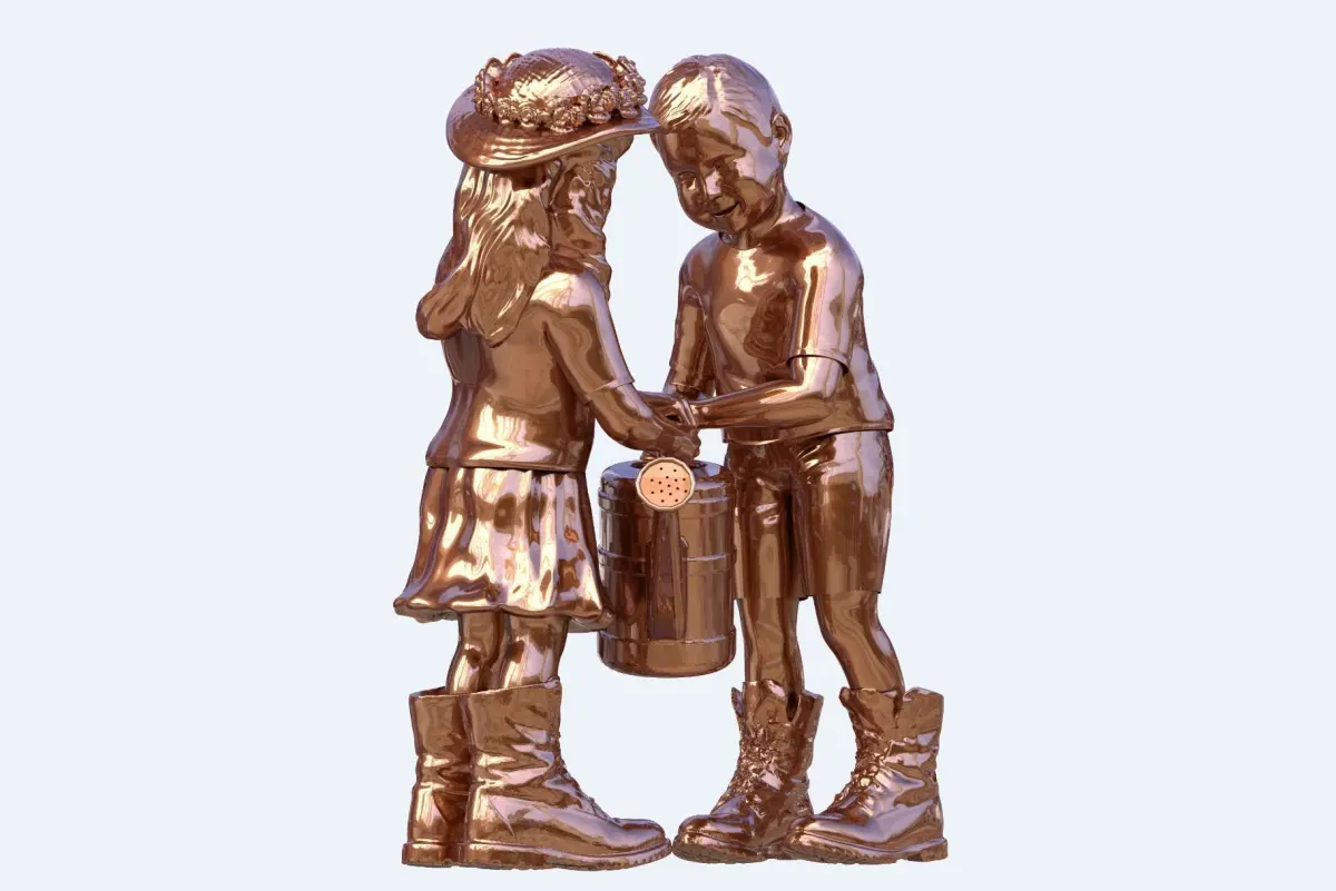 HomeCatalogsculpture bronze statue of boy and girl holding bucket 3D model