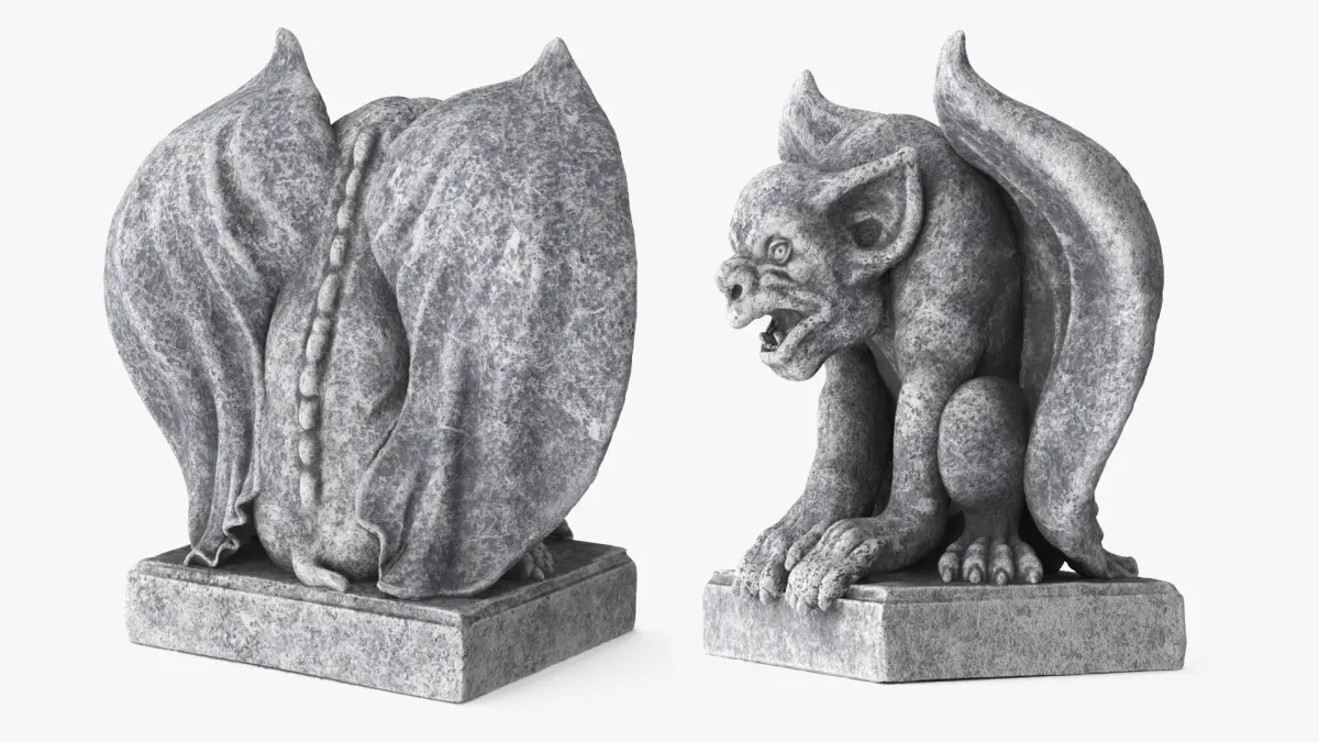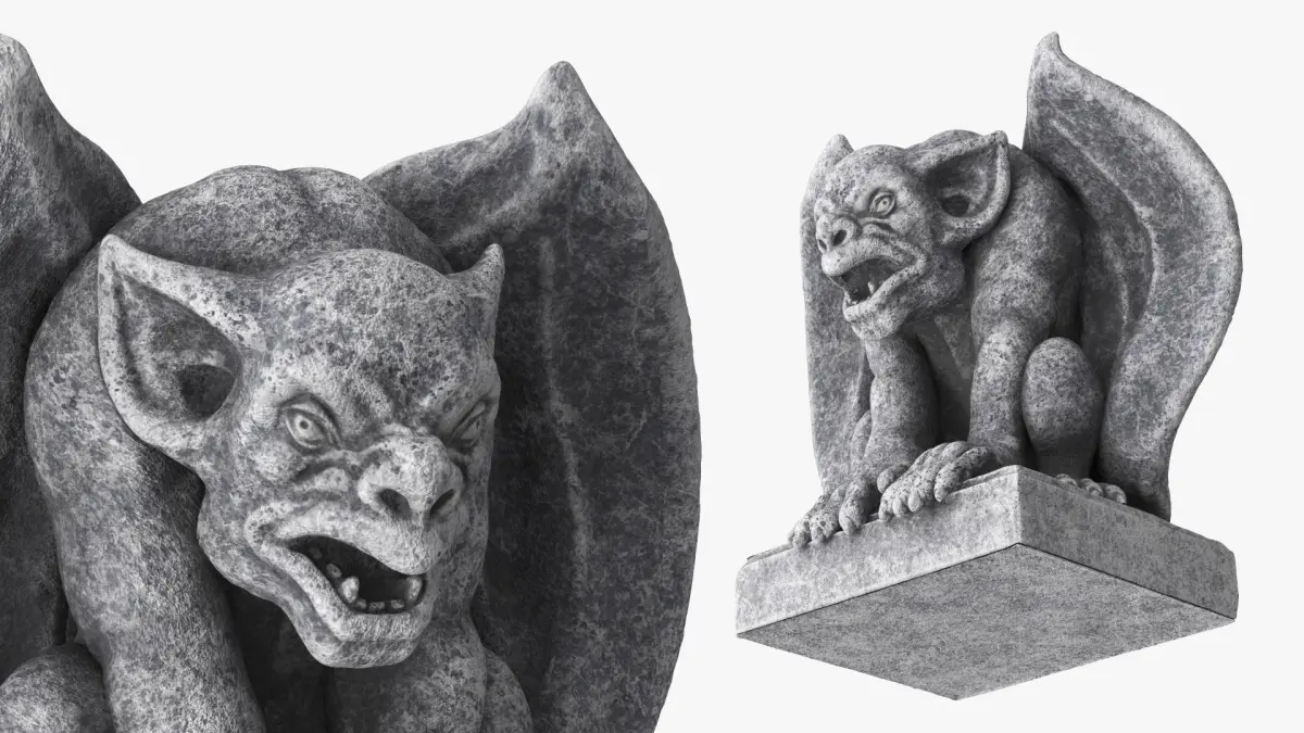 Sculpture Gargoyle Statue Gray Vintage is a 3d model of a mythical creature sculpture often used as architectural ornamentation with a decorative purpose.
