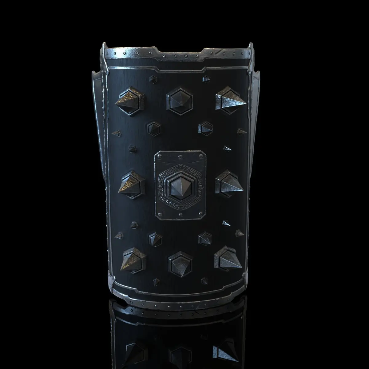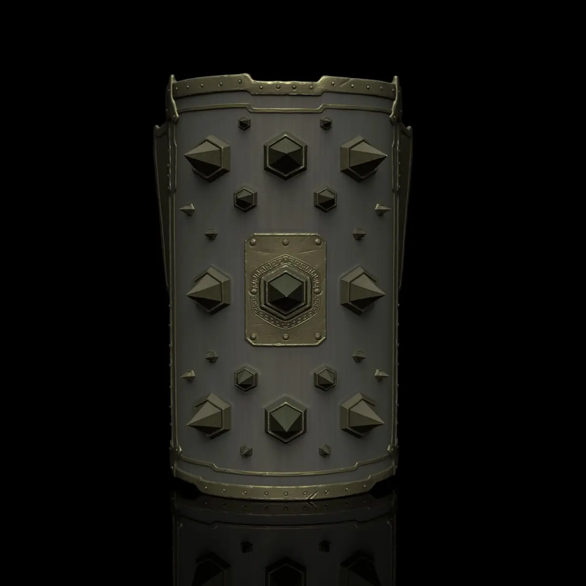 A scutum with metallic spikes is a unique and intimidating shield design that combines traditional Roman shield construction with menacing offensive elements. This unique scutum design, with its metallic spikes, not only enhances the defensive capabilities of the shield but also serves as a fearsome weapon in close combat, making it a striking and effective piece of Roman military equipment.