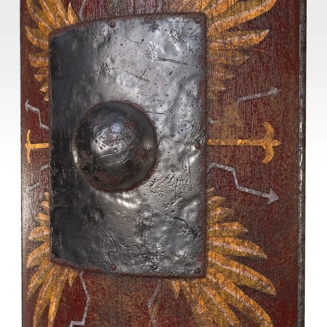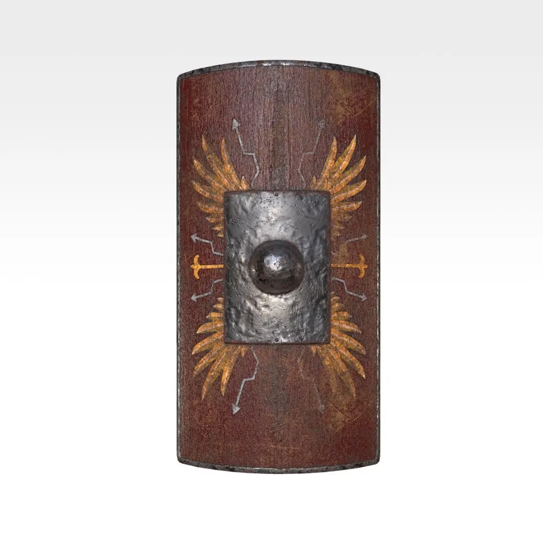 The Scutum (in respect with this 3D asset) is a large shield variant used by the Roman military. Originally an oblong and convex shield, it has developed into a large rectangular and semi-cylindrical shield, and built with multiple layers of wood for maximum defense. Though their somewhat large size may hamper mobility, they are most effective in close formations with other soldiers carrying the scutum, similar to the Greek Phalanx.