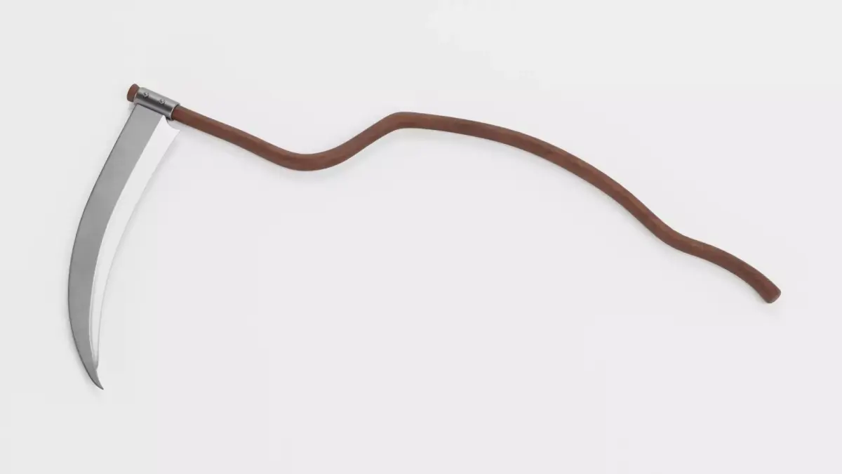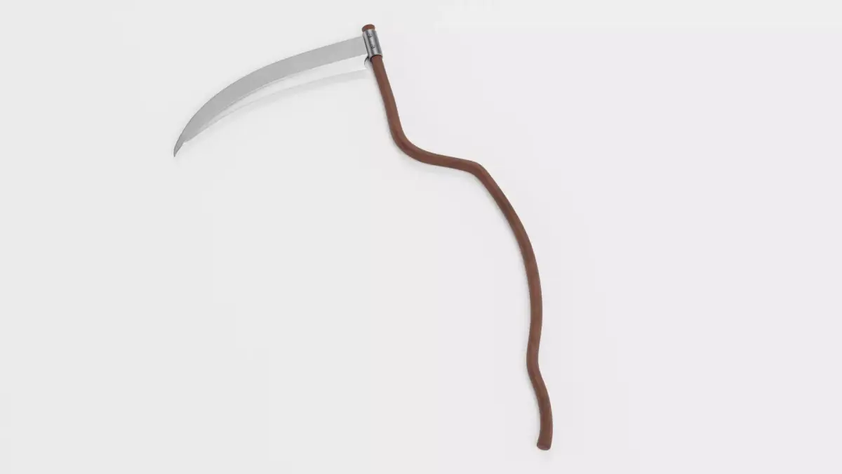 A detailed 3D model of a realistic scythe featuring a naturally twisted wooden handle that adds character and visual interest. Hand-modeled and carefully optimized, the mesh maintains clean topology for efficient rendering and animation. Ideal for fantasy environments, rustic props, or stylized renders needing a touch of authenticity.
