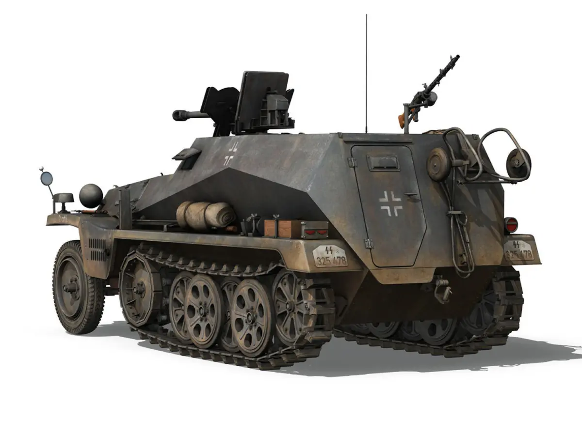 Sd.Kfz. 250 was a light armoured halftrack, very similar in appearance to the larger Hanomag-designed SD.KFZ 251, and built by the DEMAG firm, for use by Nazi Germany in World War II. The vehicle was used in a wide variety of roles throughout WW II. The basic troop carrier version was used as an armored personnel carrier for reconnaissance units, carrying scout sections. This basic variant usually mounted one or two MG 34 machineguns. Later variants carried 20 mm, 37 mm, and even 75 mm guns to support the more lightly armed versions. The SD.KFZ 250/11, introduced in late 1942, replaced the SD.KFZ 250/10 as the platoon commanders vehicle. The 37mm Pak was replaced with the tapered bore 28mm Panzerbuchse 41. The vehicle carried a crew of 6.