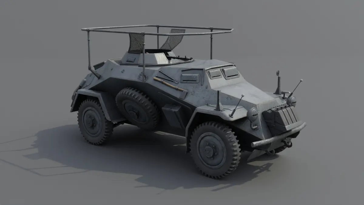 Description:The Sd.Kfz. 221 was the first in a series of light reconnaissance vehicles designed to meet operational requirements including reliability, an ability to run on a variety of grades of fuel, simple construction and good off-road performance. However, this type proved too small and too lightly armed, so in 1936-37 a heavier version was planned, using one of two standard chassis for four-wheeled armoured cars - one with a front-mounted engine, the other rear-mounted. The latter was used in the Sd.Kfz. 222, which then became the standard light armoured car in German army service until the defeat of Nazi Germany.The vehicles were developed by Eisenwerk Weserhütte of Bad Oeynhausen by using the chassis of the type Horch 108 (one of the Einheits-PKW der Wehrmacht standardised designs of heavy off-road car for the armed forces) with an angled armoured body and turret.Chassis were built by Horch (Auto Union) in Zwickau and assembled by F. Schichau of Elbing and Maschinenfabrik Niedersachsen Hannover [de] in Hanover-Linden.