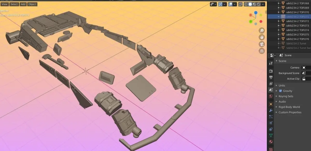 Split , non textured model of Sd.kfz234 tank / car armoured vehicle Unity-Friendly , Roblox-Friendly , meshes ungrouped with several parts