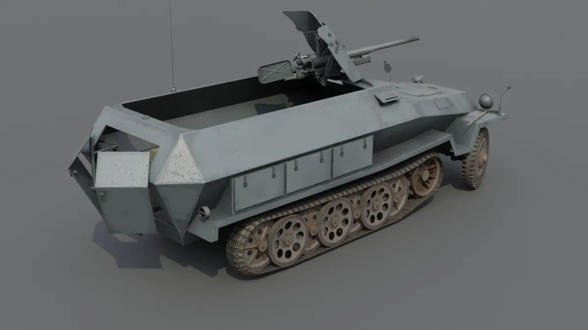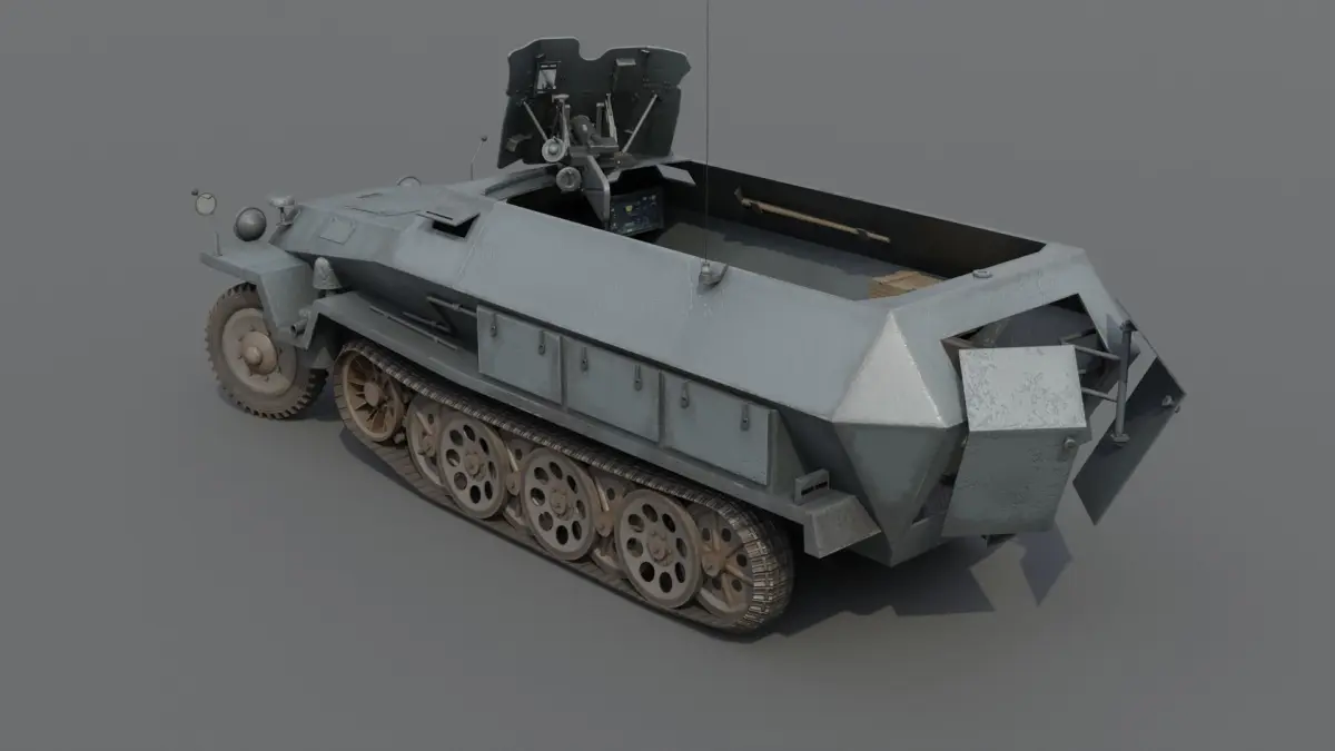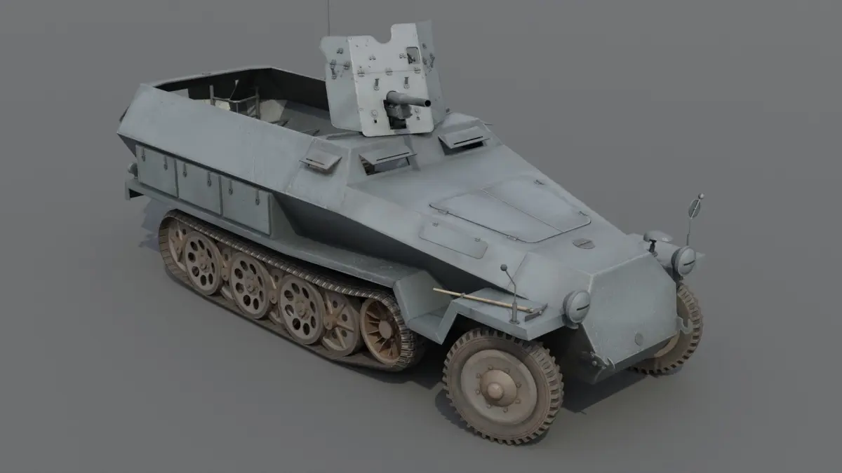 Description:The Sd.Kfz. 251 (Sonderkraftfahrzeug 251) half-track was a World War II German armored personnel carrier designed by the Hanomag company, based on its earlier, unarmored Sd.Kfz. 11 vehicle. The Sd.Kfz. 251 was designed to transport the Panzergrenadier (German mechanized infantry) into battle. Sd.Kfz. 251s were the most widely produced German half-tracks of the war, with at least 15,252 vehicles and variants produced by seven manufacturers. The utility of this vehicle led the German Army to develop the similar looking but shorter and lighter Sd.Kfz. 250 as a supplement.