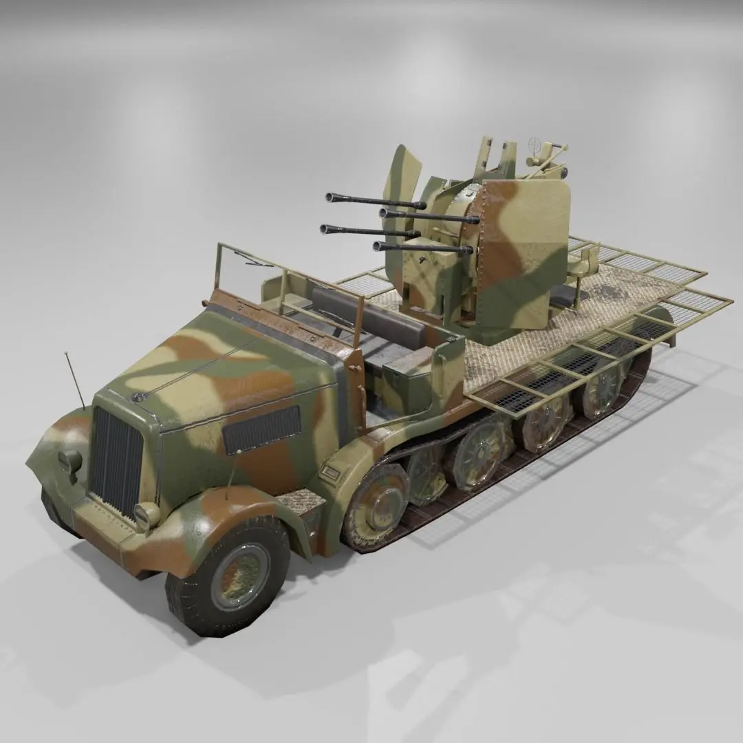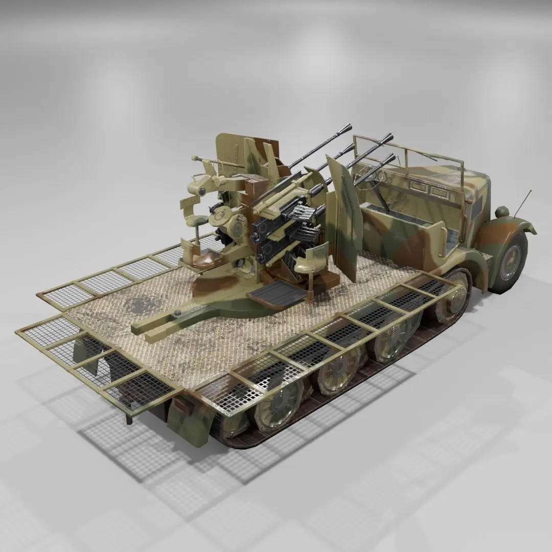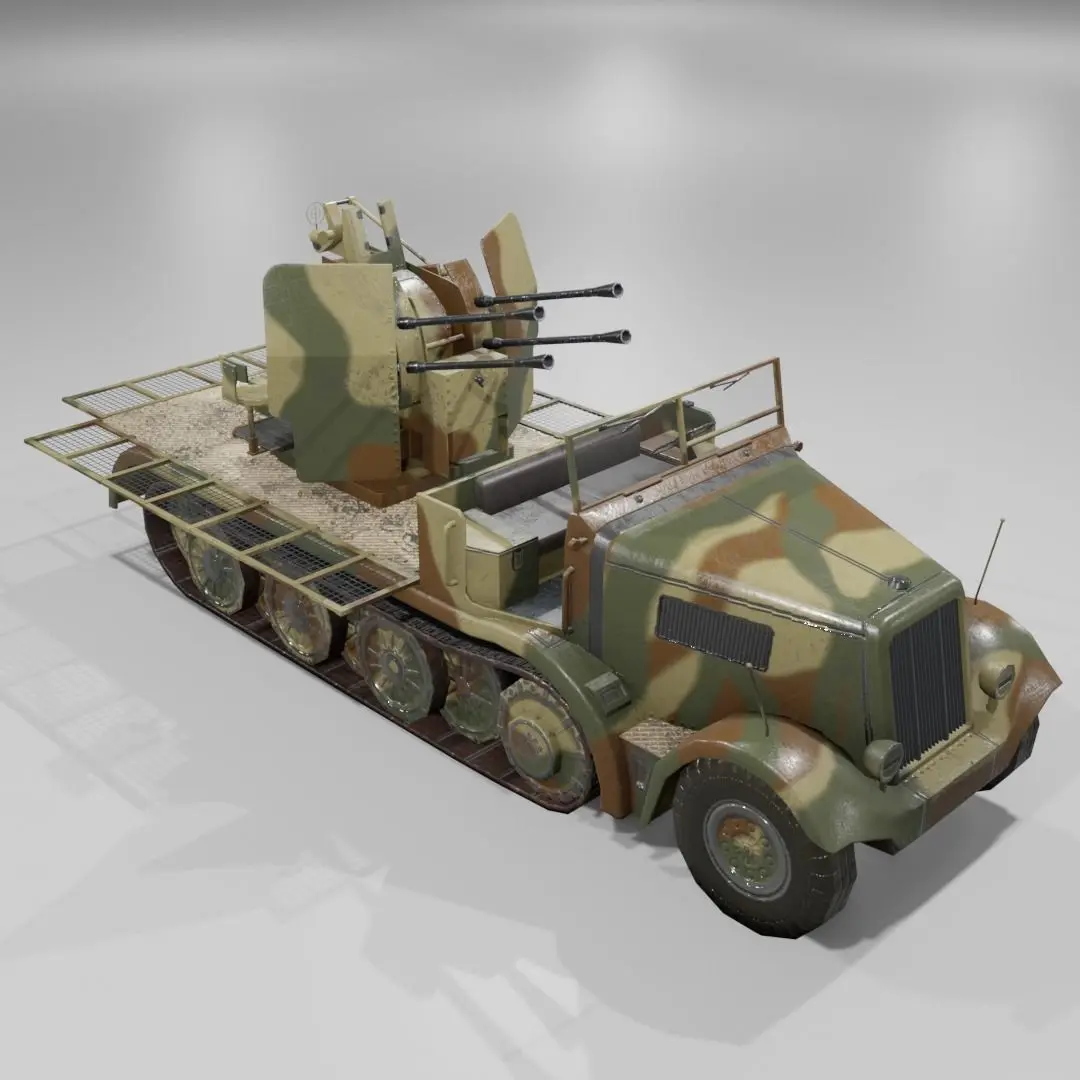Sd.kfz 7.1 anti aircraft gun Lowpoly 3D model