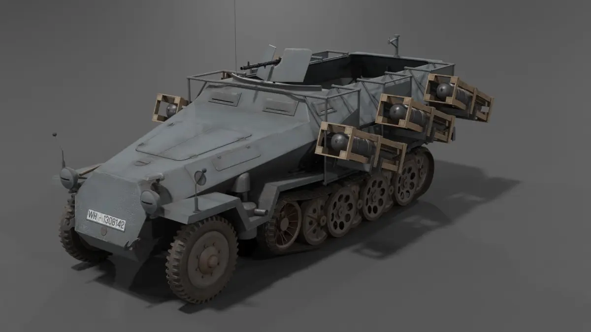 Sd.Kfz Wurfrahmen 251 Half-track multiple rocket launcher Lowpoly 3D model