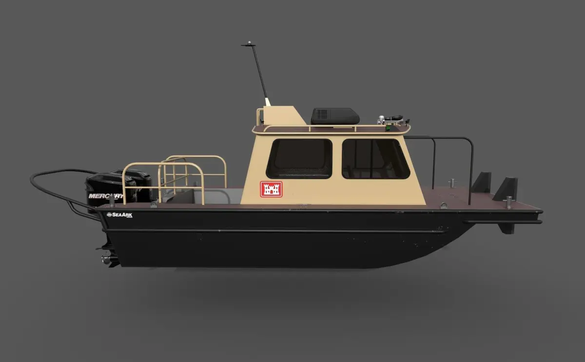 In an exclusive licensing agreement with SeaArk Marine, Willard Marine offers the Little Giant line of vessels that utilizes a proven cathedral hull shape. Their stability and large cabins make them ideal for survey work, small crew boats and multipurpose workboats. The standard cabin is 6-feet long, but longer cabins squared bows, railings and stern drives are a few of the many available options.