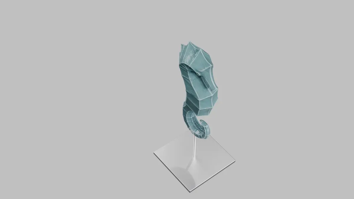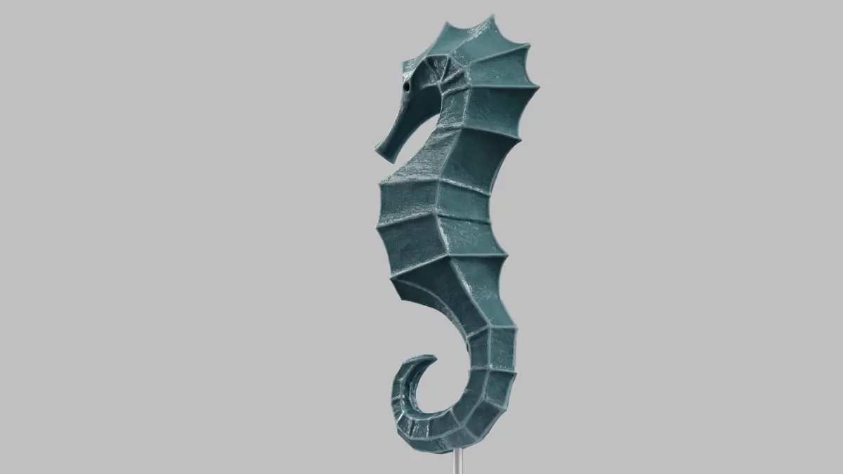 This is a 3D model of a ceramic seahorse figurine, inspired by the style of Jonathan Adler. The model is UVW mapped and comes with 8K texture maps. The topology is all-quads. This decorative piece is ideal for interior visualization. Multiple file formats are included: .max, .obj, .fbx, .abc, and more.