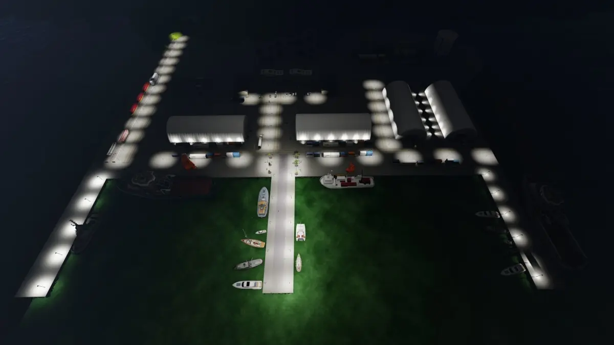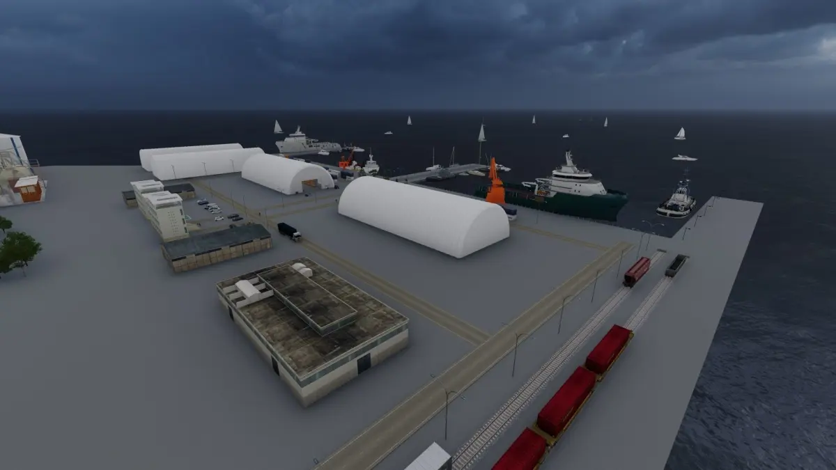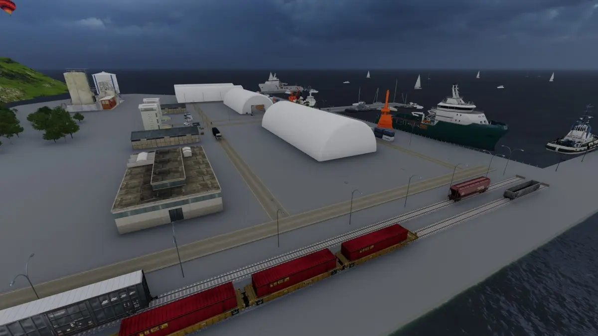Sea port scene made in Lumion 11 (*.ls11)80% models are from Lumion and 20% from other sourses.The scene was created to show pneumo frame buildings in port area.