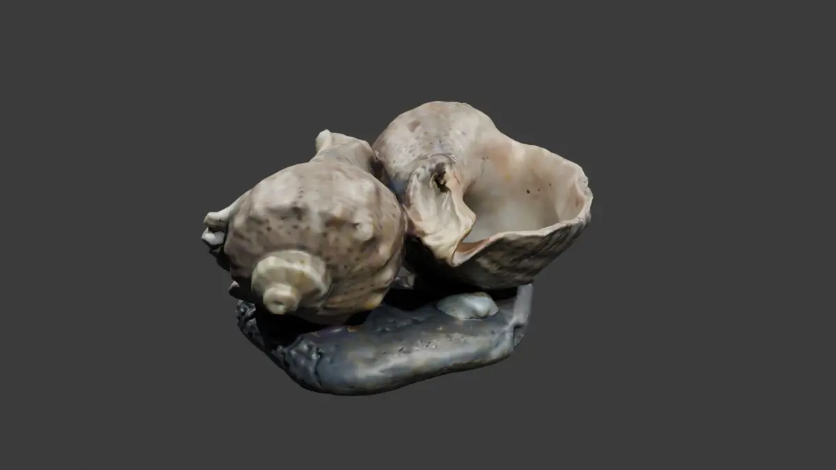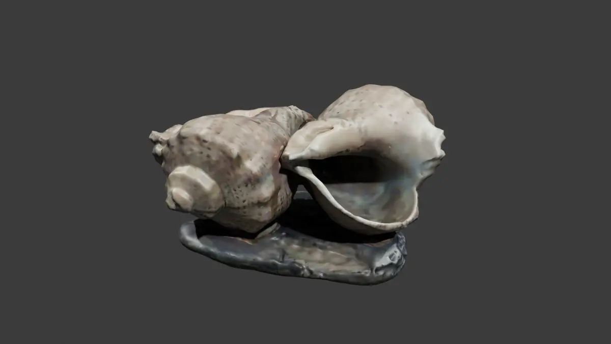 Model of a sea shell ashtray. Low rez texture and low poly mash. With normals map baked from high poly mash. Scanned with Pop3.