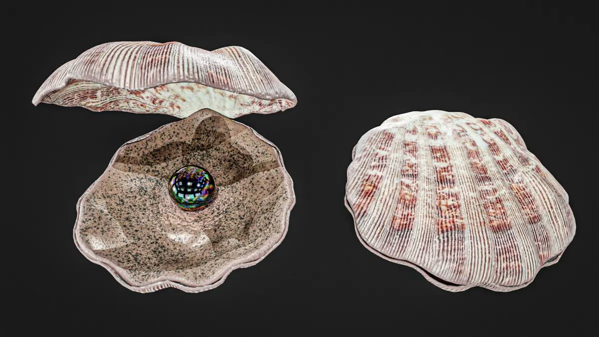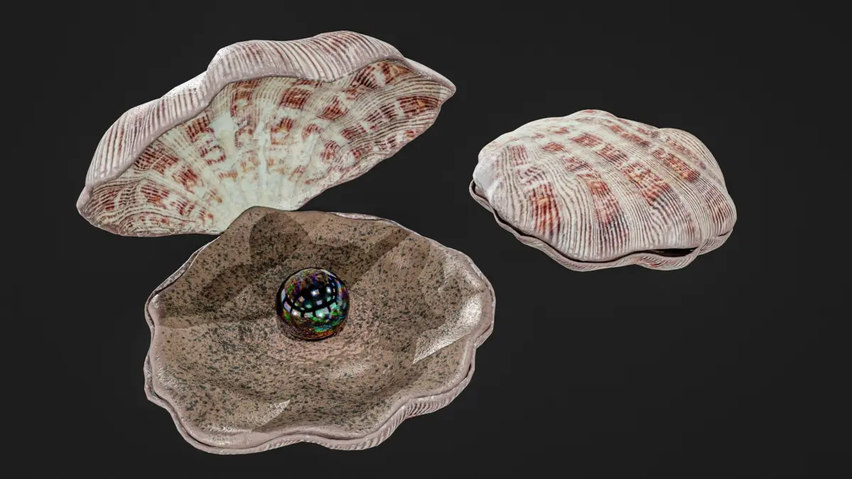 Sea Shell With Pearl Low-poly 3D model