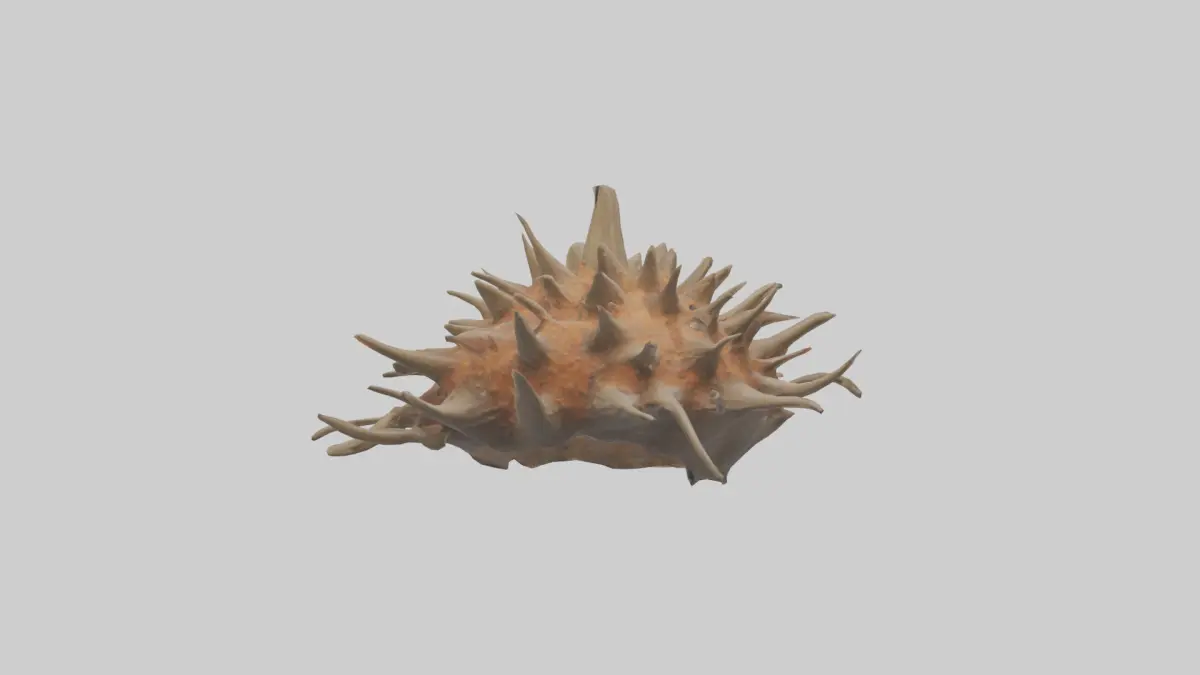 Tutunan Deniz Kestanesi'nin kısa 3D modeli. Bir kaya veya mercan gibi bir yüzeye tutunmuş bir deniz kestanesini tasvir eder. Deniz biyolojisi görselleştirmeleri ve sualtı sahneleri için uygundur. FBX, OBJ, STL, GLB, USDZ ve BLEND formatlarında mevcuttur.