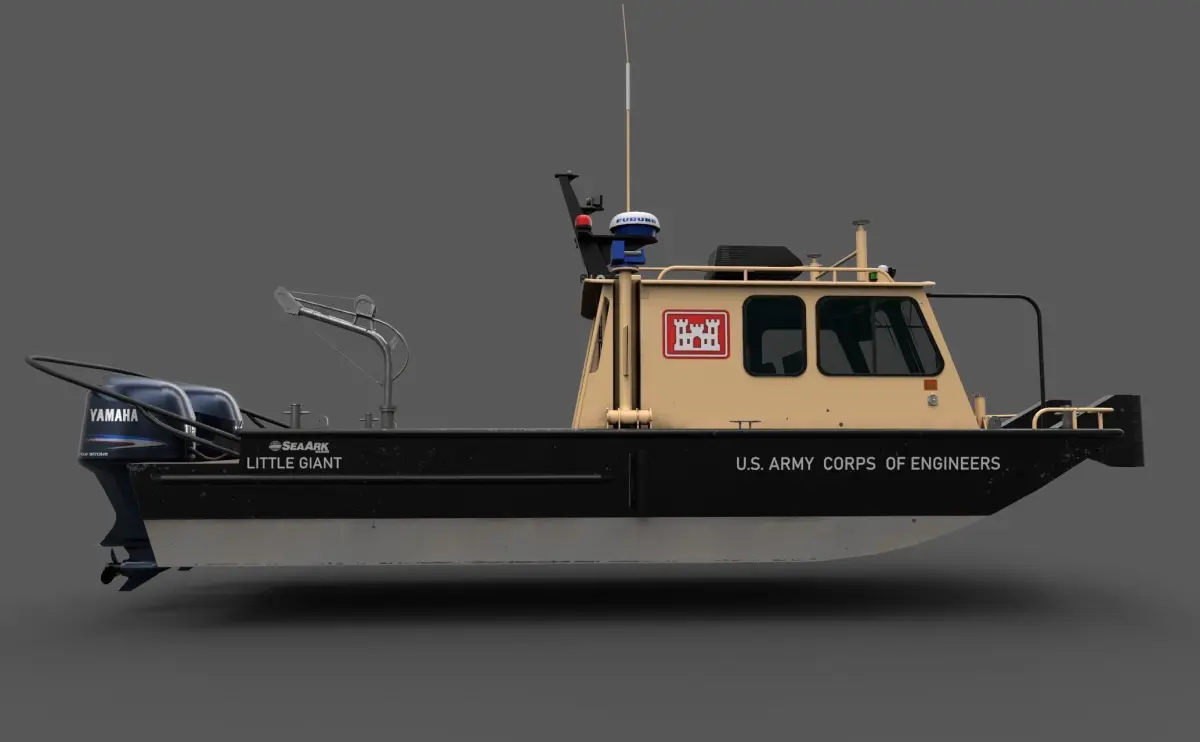 In an exclusive licensing agreement with SeaArk Marine, Willard Marine offers the Little Giant line of vessels that utilizes a proven cathedral hull shape. Their stability and large cabins make them ideal for survey work, small crew boats and multipurpose workboats. The standard cabin is 6-feet long, but longer cabins squared bows, railings and stern drives are a few of the many available options.