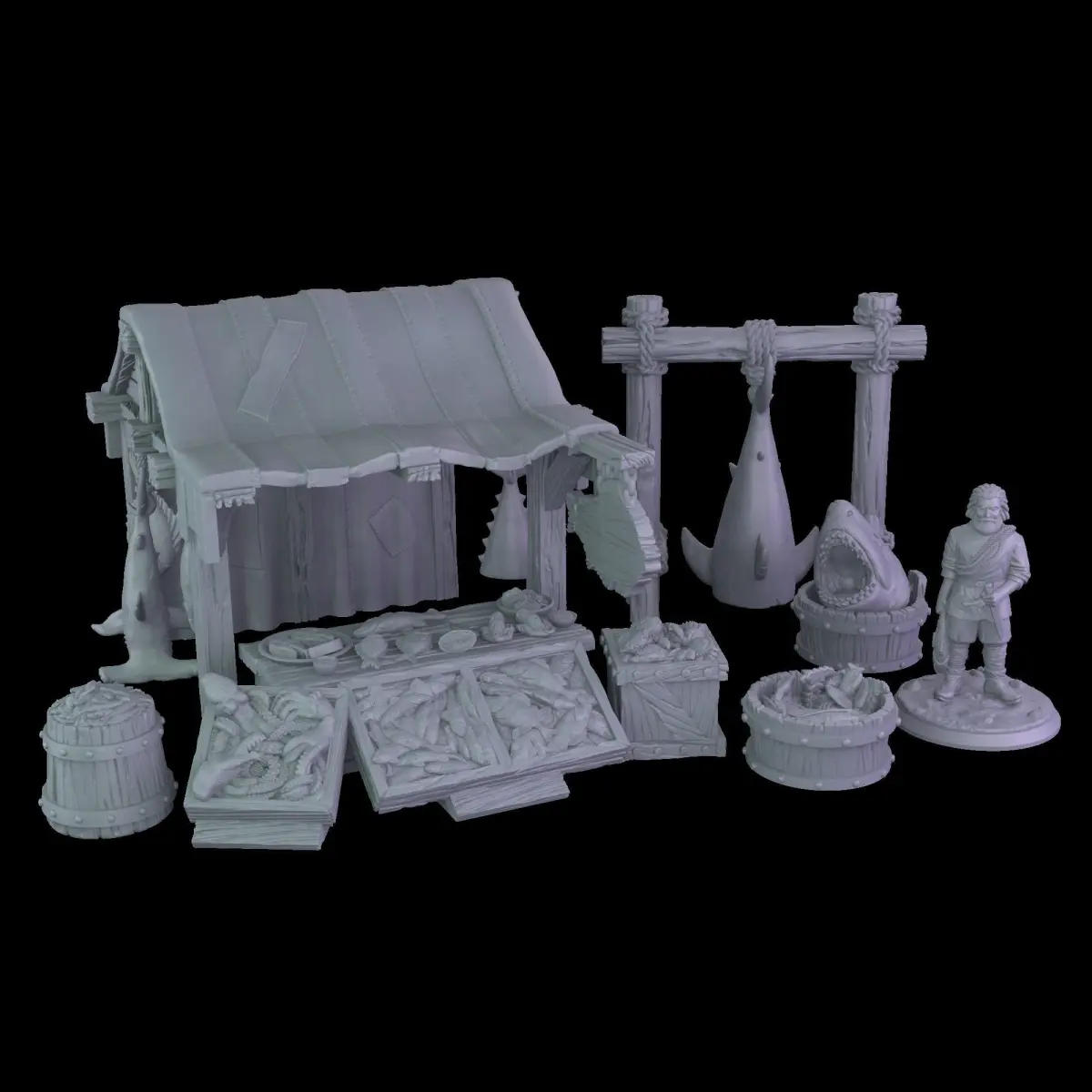 Exquisitely detailed street stall, a bustling hub of maritime delights.