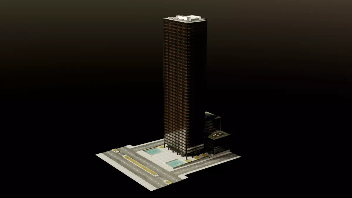 Scale model of the Seagram Building.The Seagram Building is a skyscraper at 375 Park Avenue, between 52nd and 53rd streets, in the Midtown Manhattan neighborhood of New York City, New York, U.S. It was designed in the International Style by Ludwig Mies van der Rohe along with Philip Johnson, Ely Jacques Kahn, and Robert Allan Jacobs. The high-rise tower is 515 feet (157 m) tall with 38 stories and, when completed in 1958, initially served as the headquarters of the Seagram Company, a Canadian distiller (source: Wikipedia).