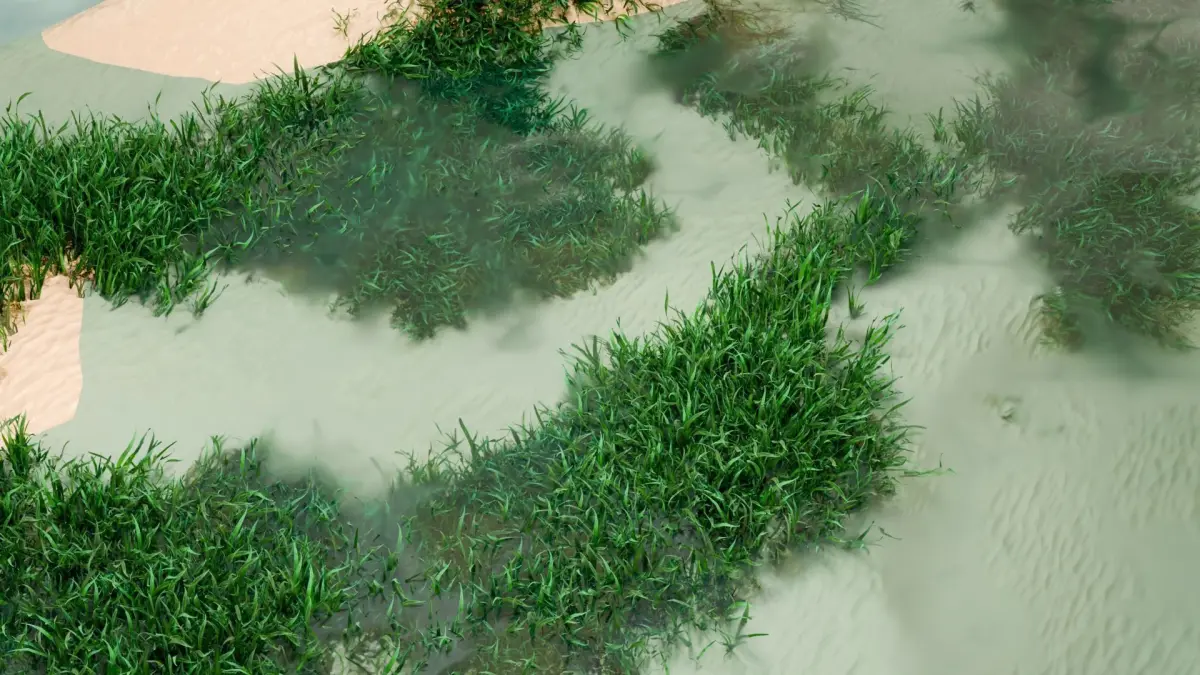 Customizable seagrass and Blender geometry nodes distributor. Easily add game-ready, realistic seagrass to underwater and shoreline scenes.