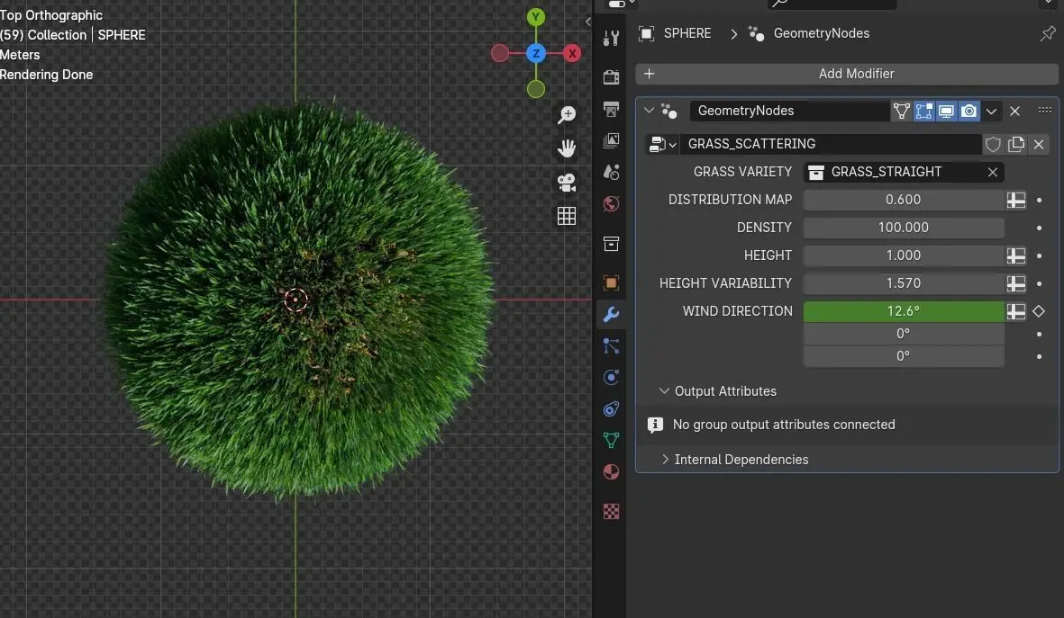 Easy to use geometry nodes setup allows for full customization. Alter the overall height and the height variability between blades of grass, as well as a weight-paint base distribution system.