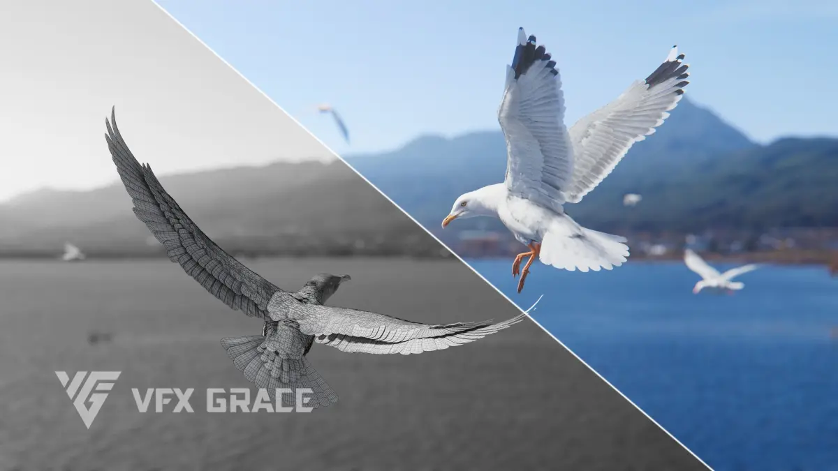 This is a high-quality seagull model with maps, hair cards, rigging, 5 animations and a realistic muscle structure. In addition, there are complex feather cards and maps, with a total number of 540,000 faces for all the feathers which significantly increase the realism. Fine rigging makes it possible to control every feather and more details for the animation. This model is made with Blender3.4 and Cycles renderer at real-world scale.