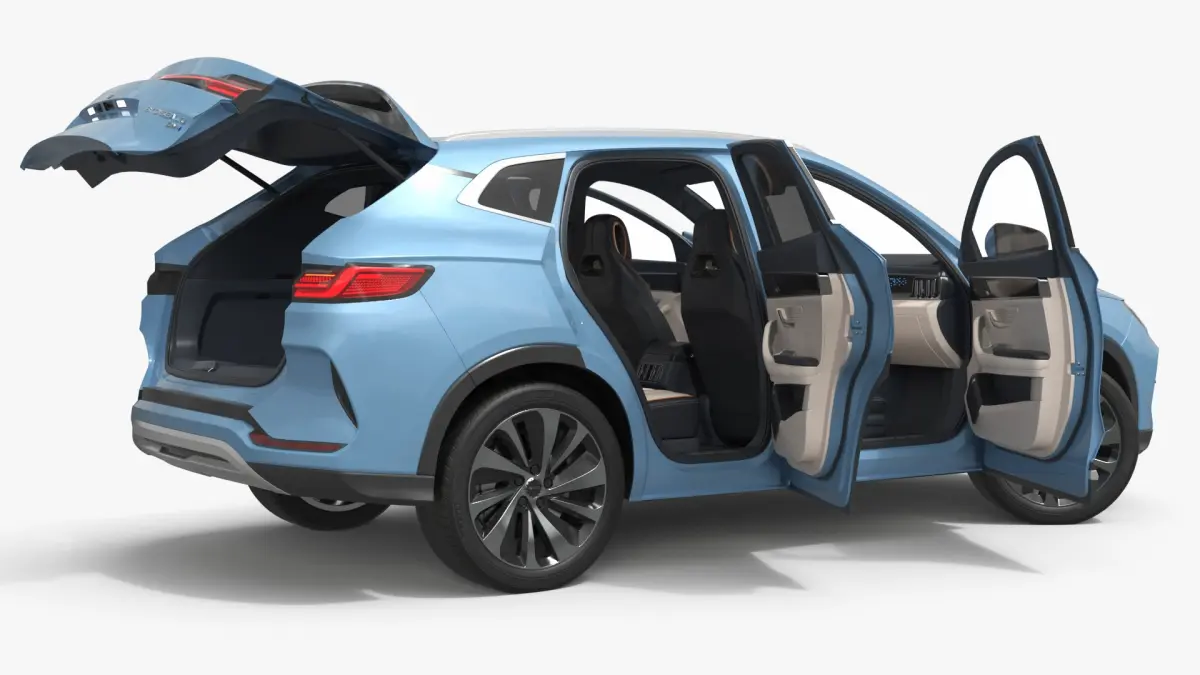 Seal U BYD Electric Family SUV Blue Rigged for Maya is fully rigged and is ready to be animated in Maya. You can easily position it the way you need or animate it the way your project requires. See the screenshots to get an idea of how rigging works. The pose of the model on the render images is an example and can be recreated using rig, it is not initially included into the product.