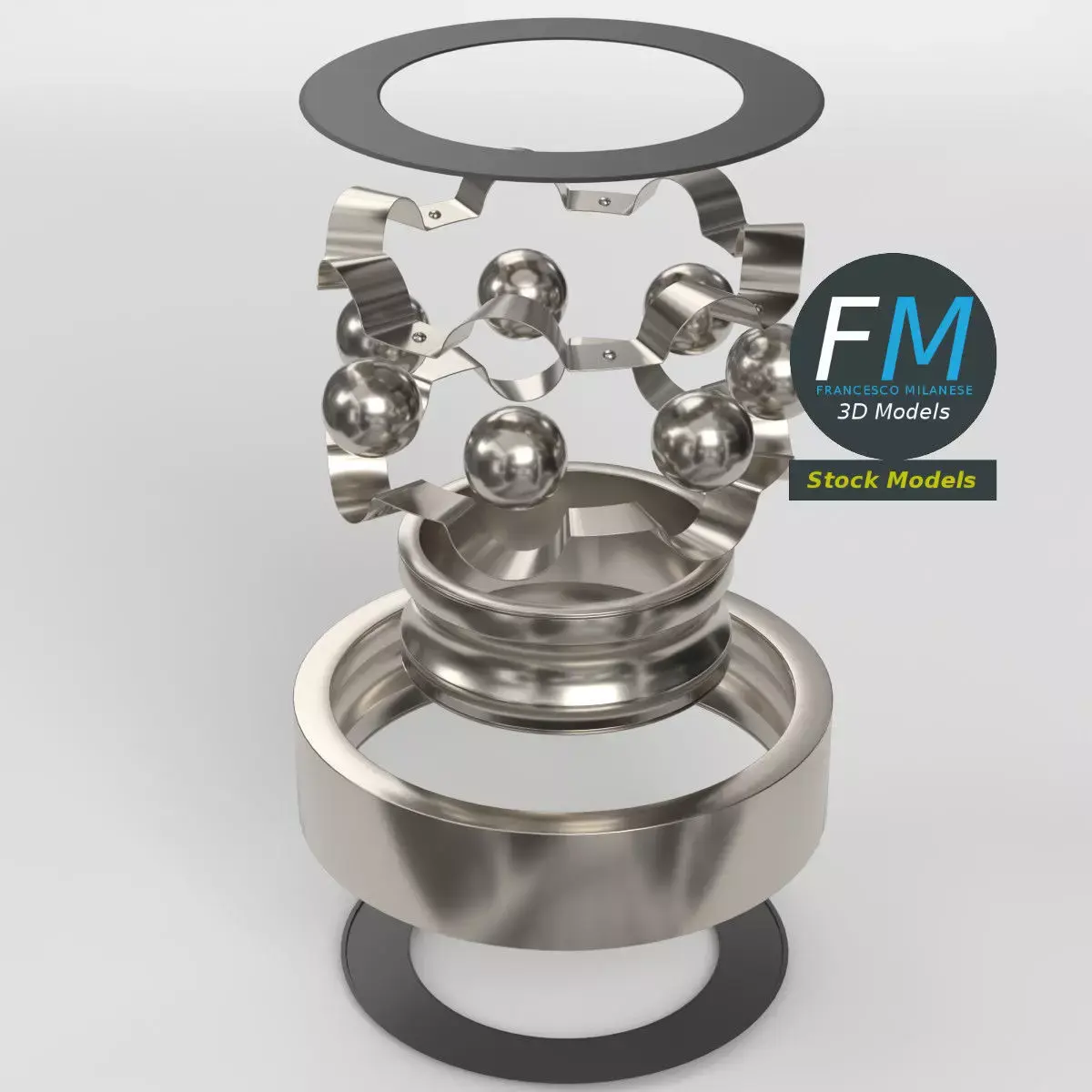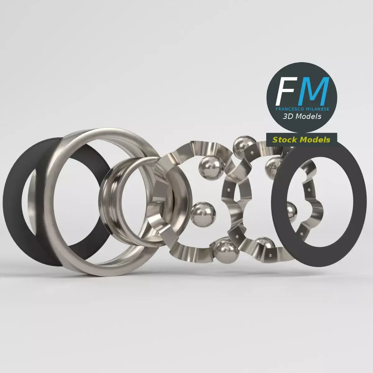 A detailed 3D Model of a sealed ball bearing, modeled inside with separate parts (see preview images), featuring polished metal races, precision steel balls, retainers, and sealing rings, ideal for mechanical visualization, engineering presentations, and industrial renders. 7 objects (outer race, inner race, front sealing, back sealing, front cage, back cage, balls), sharing the same non overlapping UV Layout Map, Material, and PBR Textures set. Production-ready 3D Model with non overlapping UV Layout map provided in the package. PBR Materials and Textures (Metallic Workflow: Base Color, Metallic, Roughness, Normal) embedded in the Blend, FBX, and GLB files.Easily customizable: UV unwrapped geometries; UV Layout maps provided in the package as png with alpha images.Quads-only geometry.Made with Blender 4.5 with Cycles Principled BSDF (PBR, Metallic Workflow) Material, then exported to other formats (OBJ, FBX, GLB; FBX and GLB have embedded textures).Promo images: some renderings made with Cycles for Blender, plus Wireframes and Blender screenshots (Object Mode, Edit Mode with UVs).Formats included: FBX with embedded PBR Textures (Metallic Workflow: Base Color, Metallic, Roughness, Normal), GLB with embedded PBR Textures (Metallic Workflow: Base Color, Metallic, Roughness, Normal), OBJ; scenes: BLEND (with Cycles Principled (PBR) Materials); other: 16-bit PNGs with Alpha.7 Objects (meshes), 1 PBR Material, UV unwrapped (non overlapping UV Layout map provided in the package).UV Layout maps and Image Textures resolutions: 2048x2048.Polygonal, QUADS-ONLY, 14314 vertices, 14286 quad faces (28572 tris).Real world dimensions; scene scale units: METERS in Blender 4.5 (that is: Metric with 1.00 scale).Uniform scale object (scale applied in Blender 4.5).PBR Textues included: in a zipped folder, you'll find the PBR Textures set (as 16-bit PNGs with Alpha).IMPORTANT --- Main renderings made with Blender 4.5 + Cycles using an HDR Environment Texture Image which is NOT provided in the package!