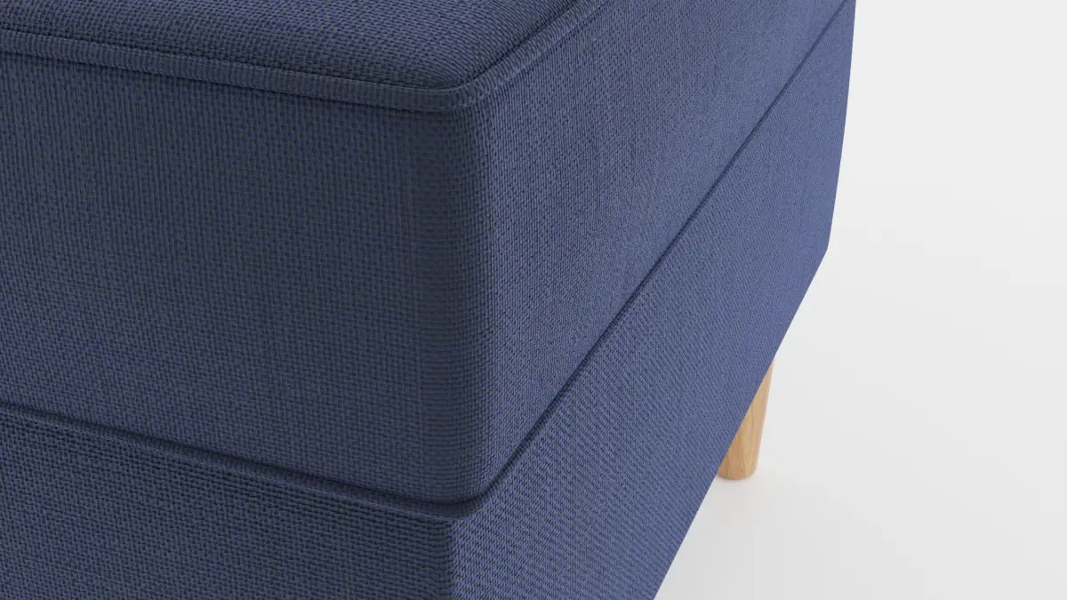 Fabric texture was adjusted using nodes in Blender to get darker appearance. Original render showing light blue colour is added as well if you are interested in it.