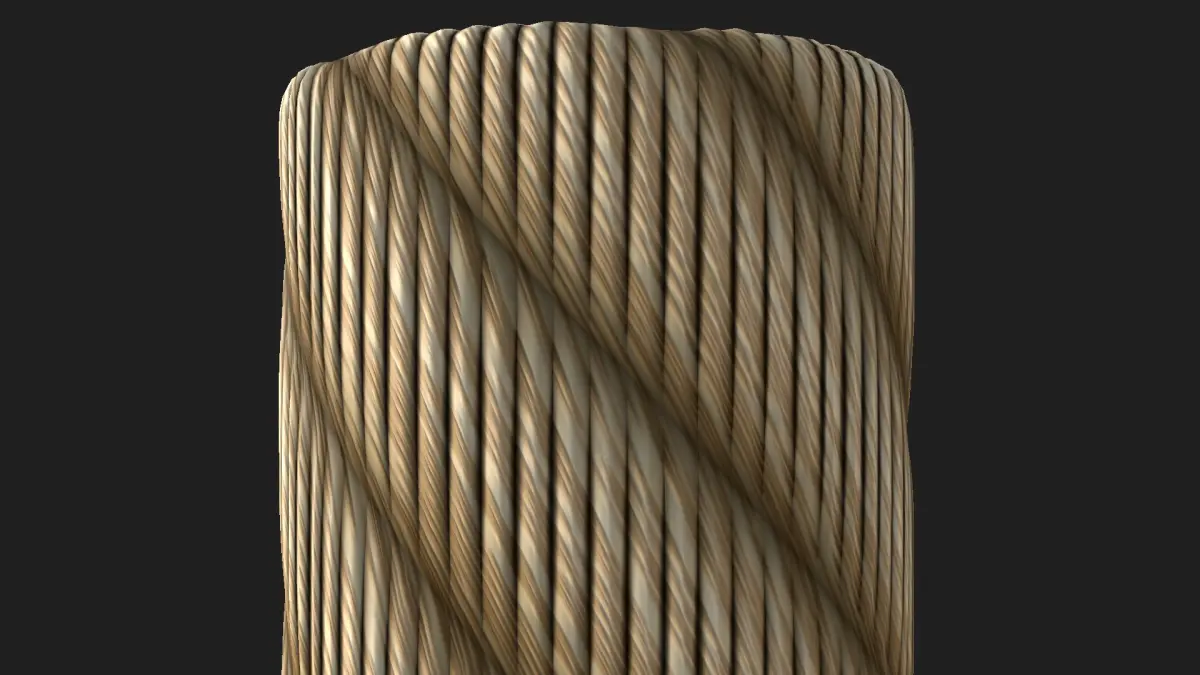Seamless PBR textures of the rope were created for quick low poly rope texturing.