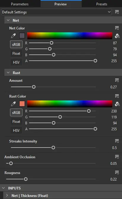 - Rust (Amount, Rust Color, Streaks Intensity)