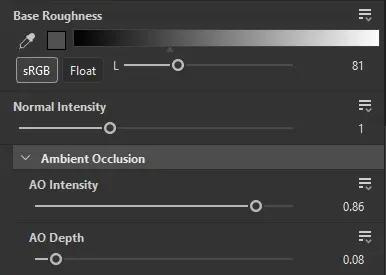 - Ambient Occlusion (AO Intensity, AO Depth)