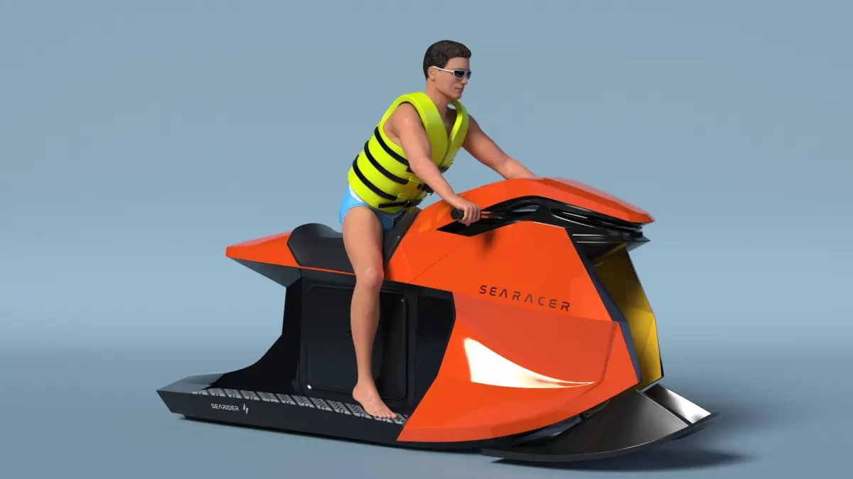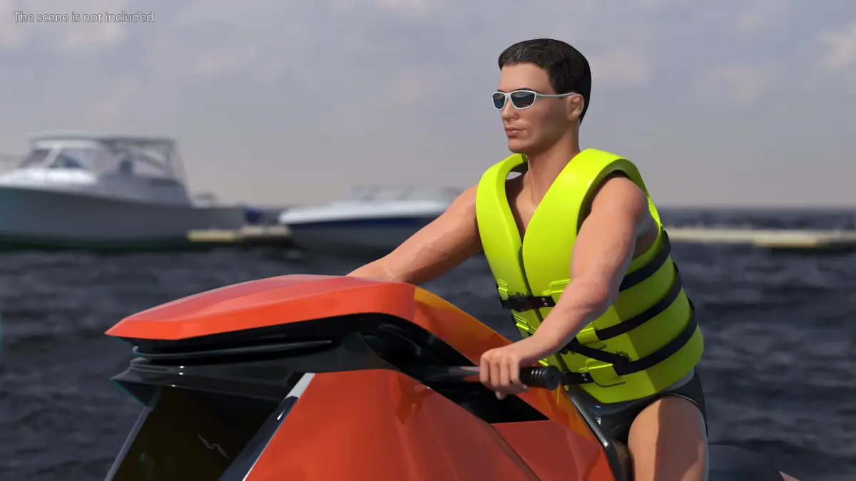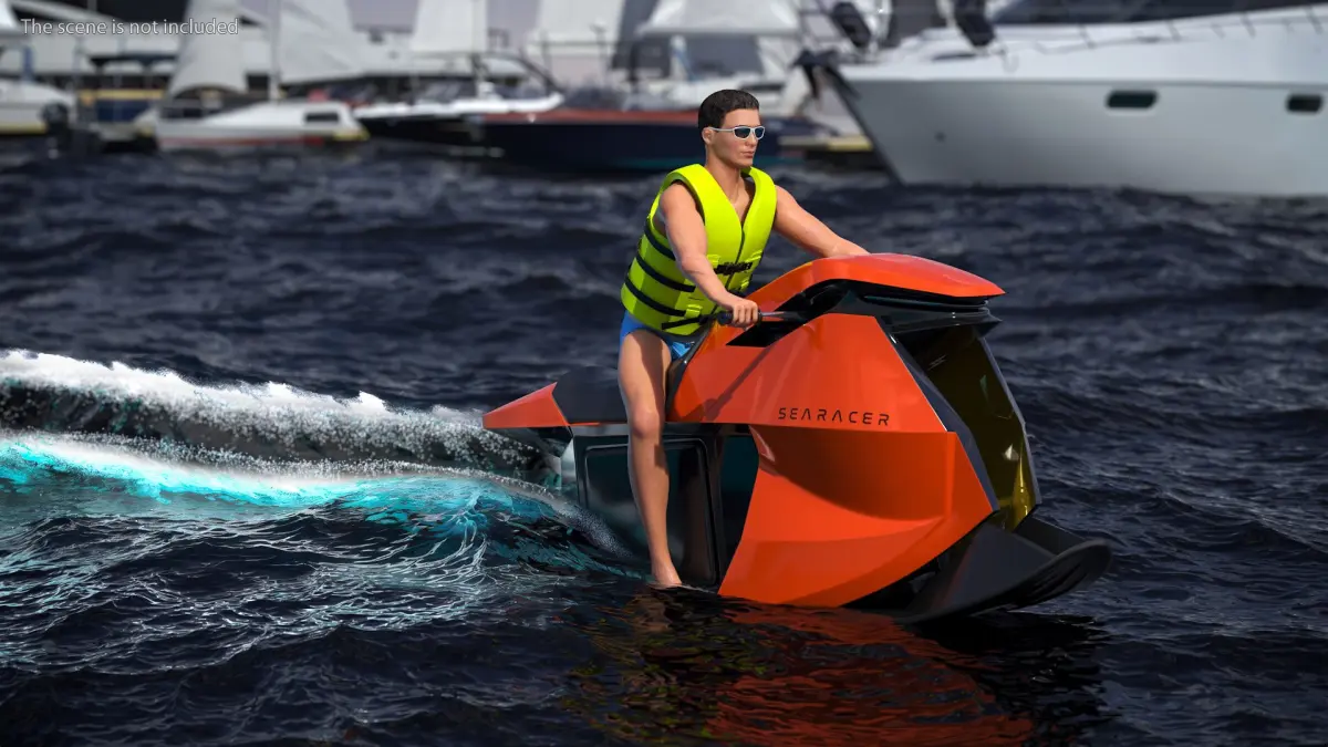 SeaRacer Jet Ski with Rider in Life Jacket is a three-dimensional model of a sleek, innovative watercraft designed for thrilling aquatic adventures.