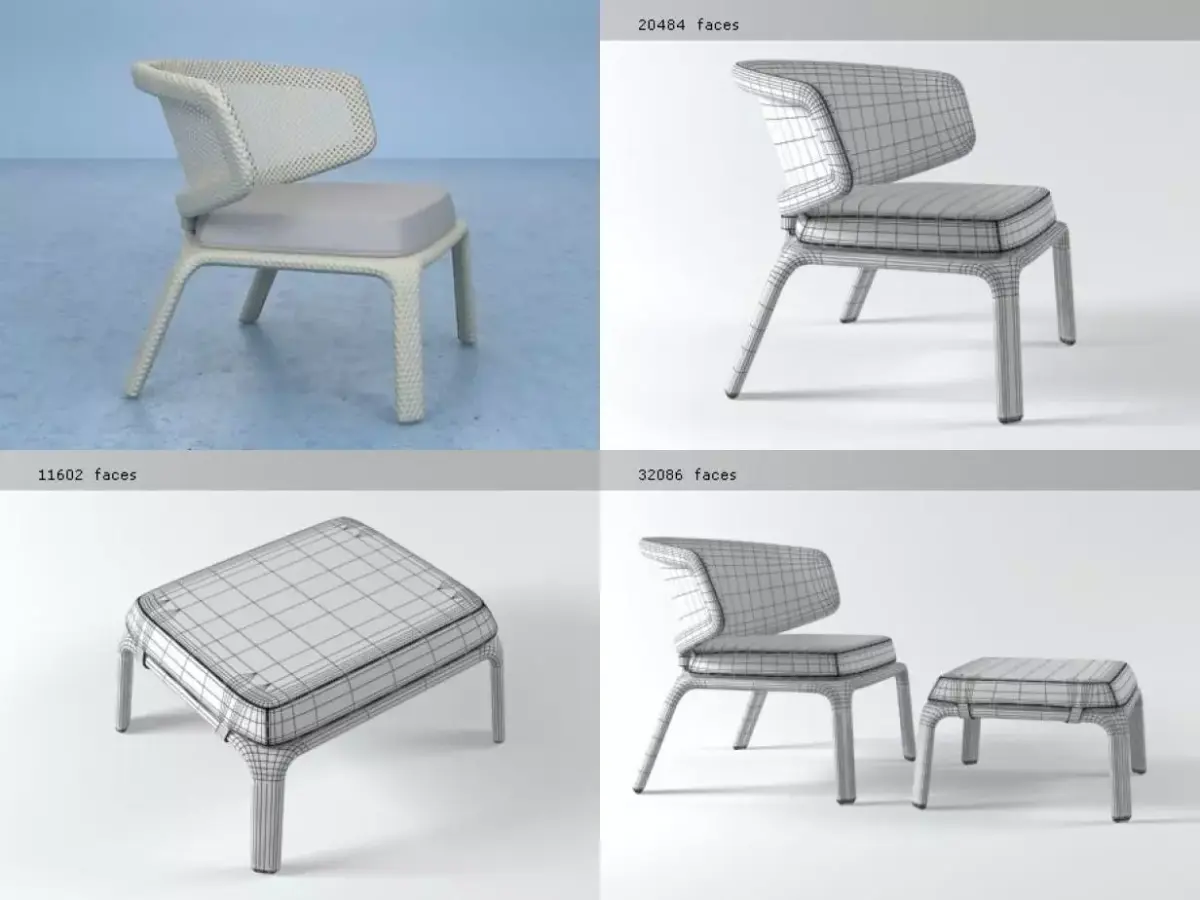 Seashell lounge chair and footstool by Dedon | 3d model produced by Design Connected | www.designconnected.com