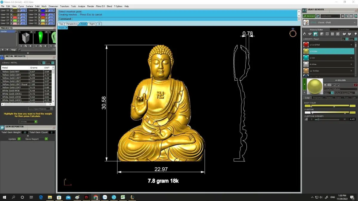 This seated Buddha meditation statue 3D model features a calm and harmonious posture with refined sculptural details. The design captures a peaceful seated pose with balanced proportions, making it suitable for spiritual jewelry, decorative objects, and religious art production.