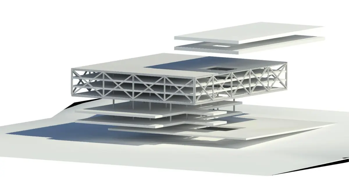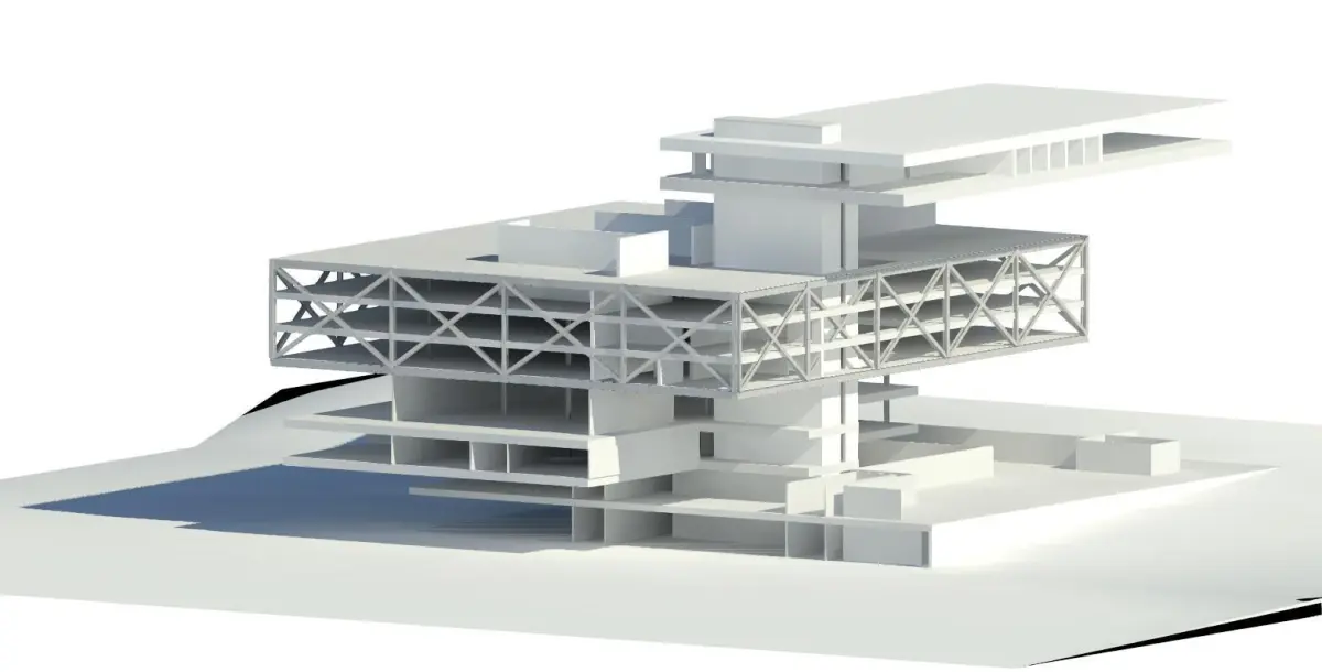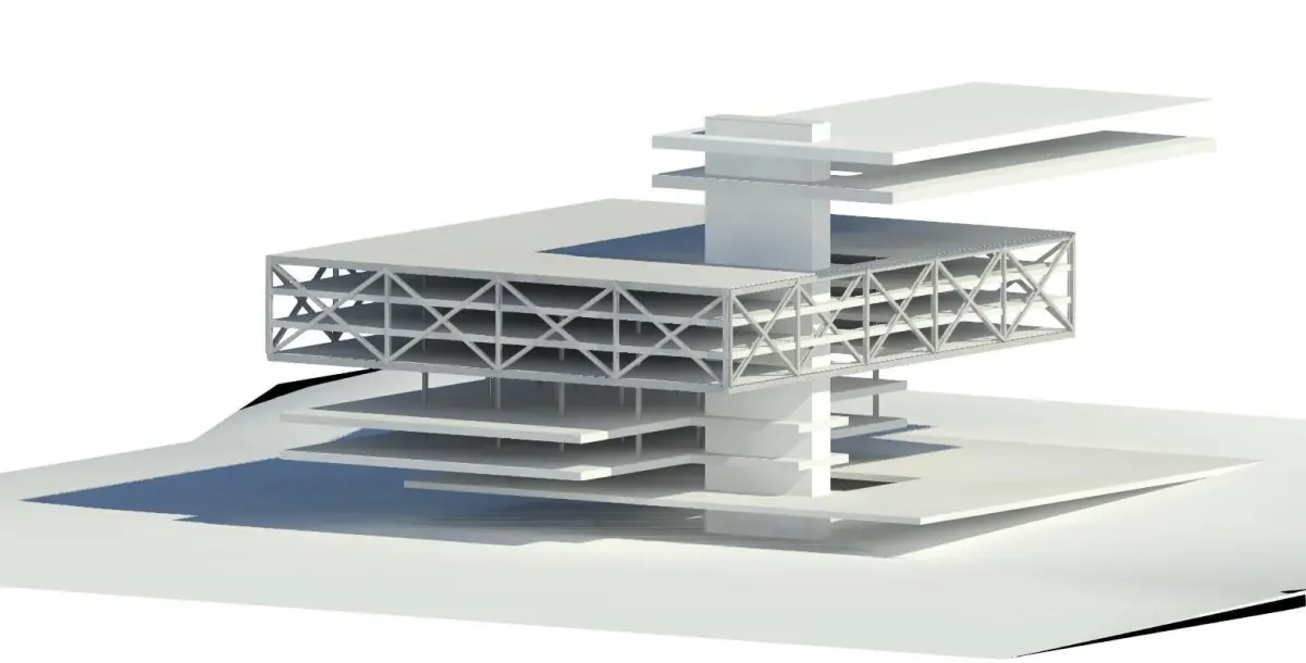 3D model of the Seattle Public Library, created directly from Revit. It includes the basic internal structure of walls and slabs, along with the facade system. It is a synthesis of the project that can serve as a reference model.
