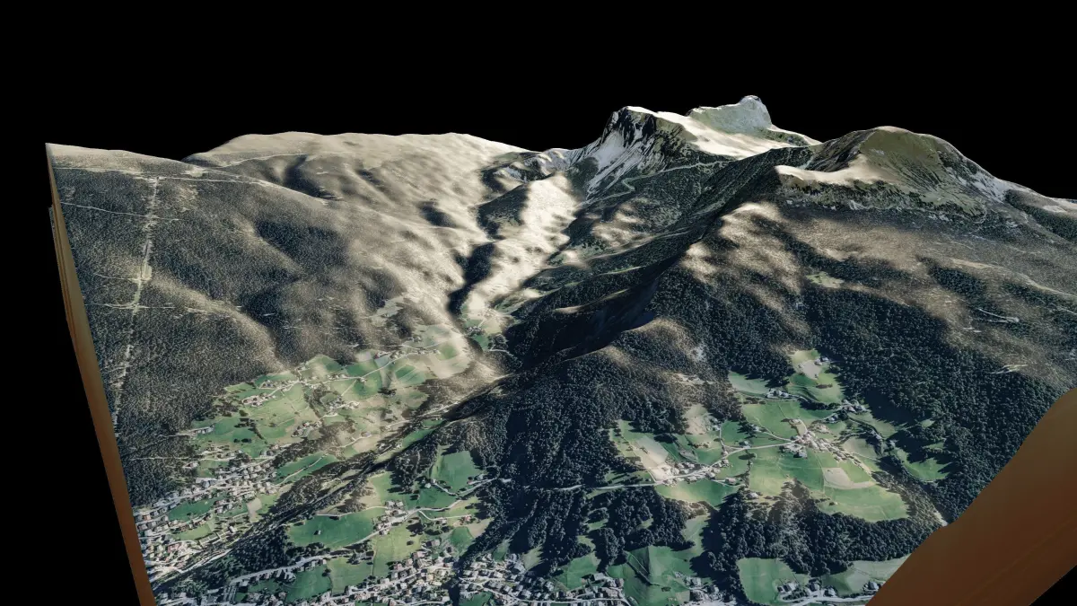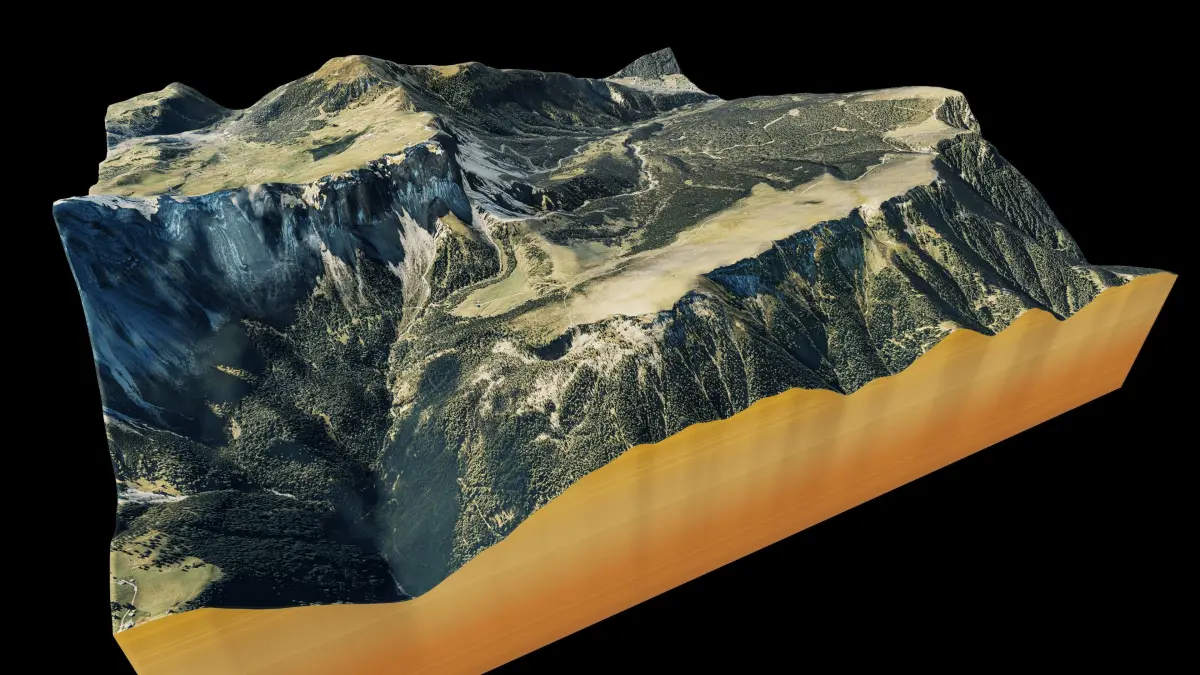 Seceda Mountain 3d model terrain. 3d model landscape of the Seceda Mountain.